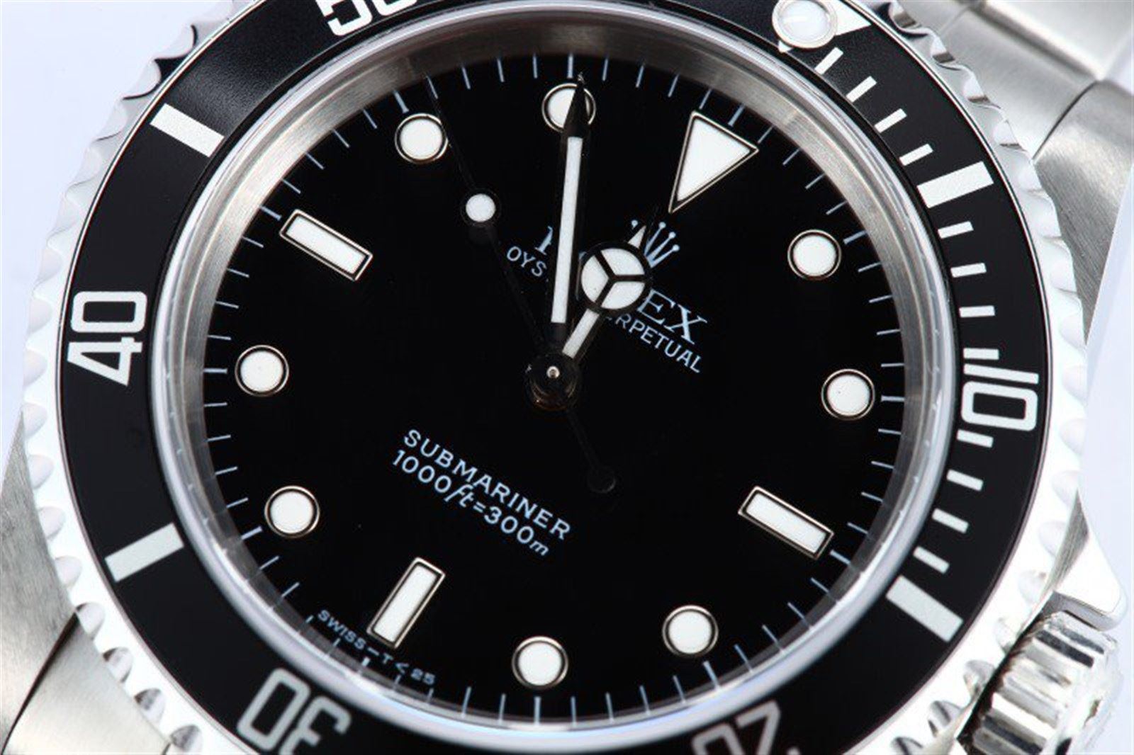 Model/Style-Submariner 14060 Features-Automatic movement, waterproof screw-down crown, unidirectional rotatable time-lapse diver's bezel, scratch-resistant sapphire crystal Case-Stainless steel (40 mm) Bracelet-Stainless steel Oyster #9259