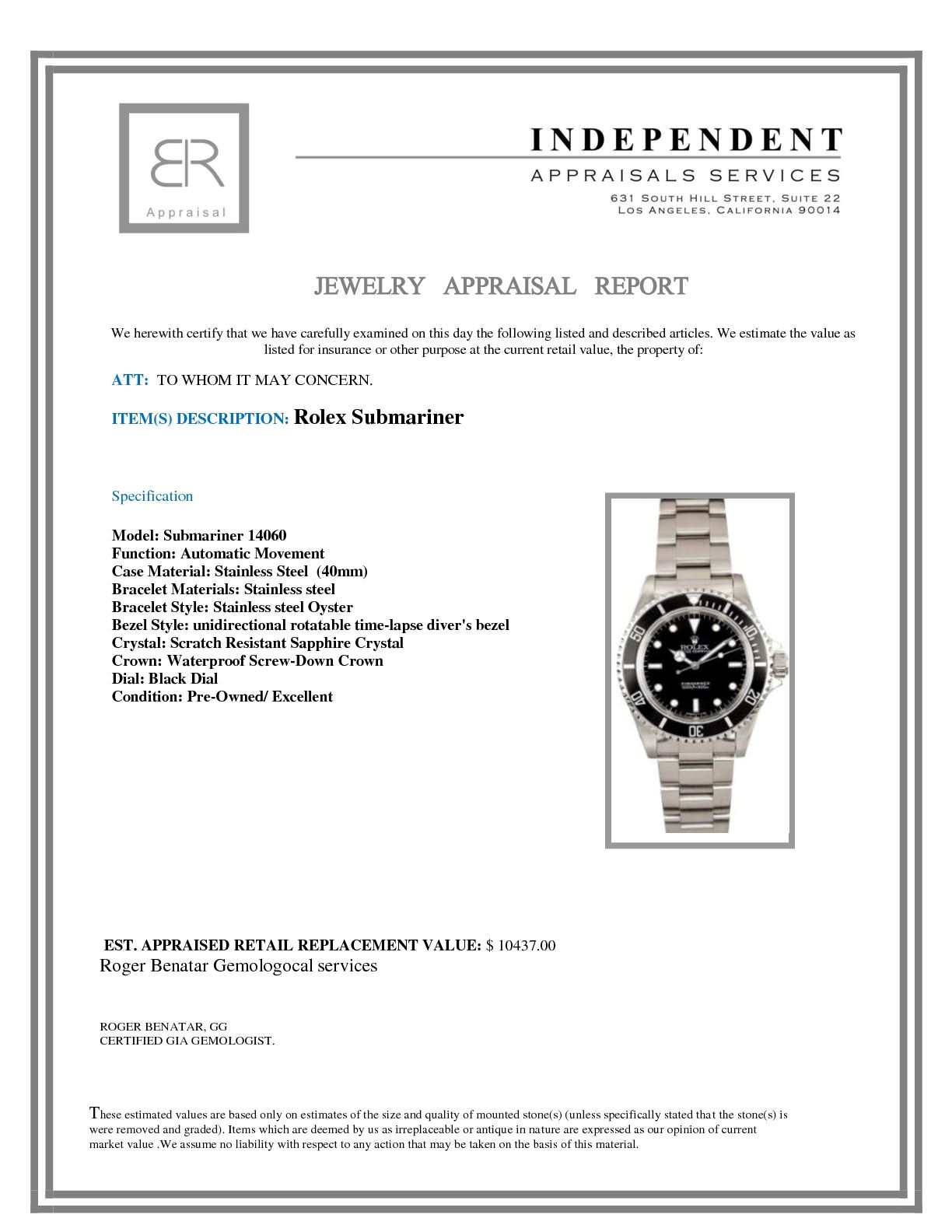 Not all jewelry, watches or loose stones are appraised and the appraisals are provided for bidders only in certain instances at the discretion of the Company. Appraisals, if any should be use to verify gemstone and or metal weights. The appraisals should not be used for valuation of any item. No guarantee, warranty or representation is intended by the Company in any appraisal. All dimensions and weights of such lots are approximate and are consistent with standards and practices in the industry. Condition reports are provided as a service to the prospective buyer. Bidders should take note that such descriptions are not warranties and that watches may need general service, change of battery or further repairs for which the buyer is solely responsible