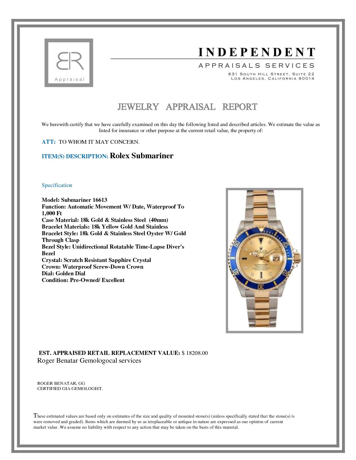 Not all jewelry, watches or loose stones are appraised and the appraisals are provided for bidders only in certain instances at the discretion of the Company. Appraisals, if any should be use to verify gemstone and or metal weights. The appraisals should not be used for valuation of any item. No guarantee, warranty or representation is intended by the Company in any appraisal. All dimensions and weights of such lots are approximate and are consistent with standards and practices in the industry. Condition reports are provided as a service to the prospective buyer. Bidders should take note that such descriptions are not warranties and that watches may need general service, change of battery or further repairs for which the buyer is solely responsible