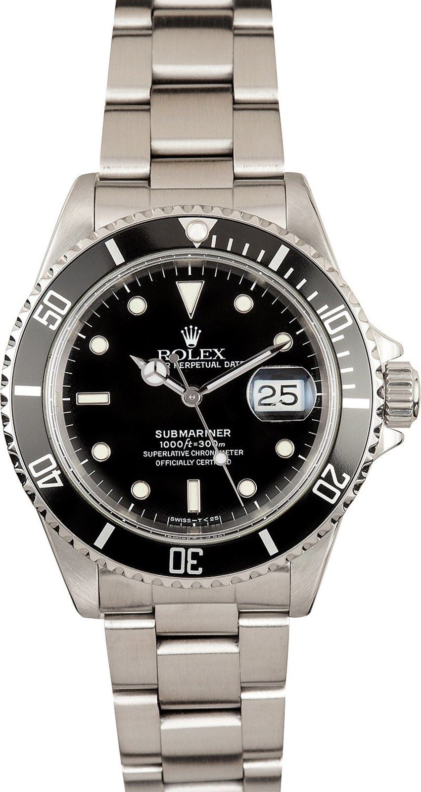 Model/Style-Submariner 16610 Features-Automatic movement w/date, waterproof screw-down crown, unidirectional rotatable time-lapse diver's bezel, scratch-resistant sapphire crystal Case-Stainless steel (40mm) Bracelet-Stainless steel Oyster #9191