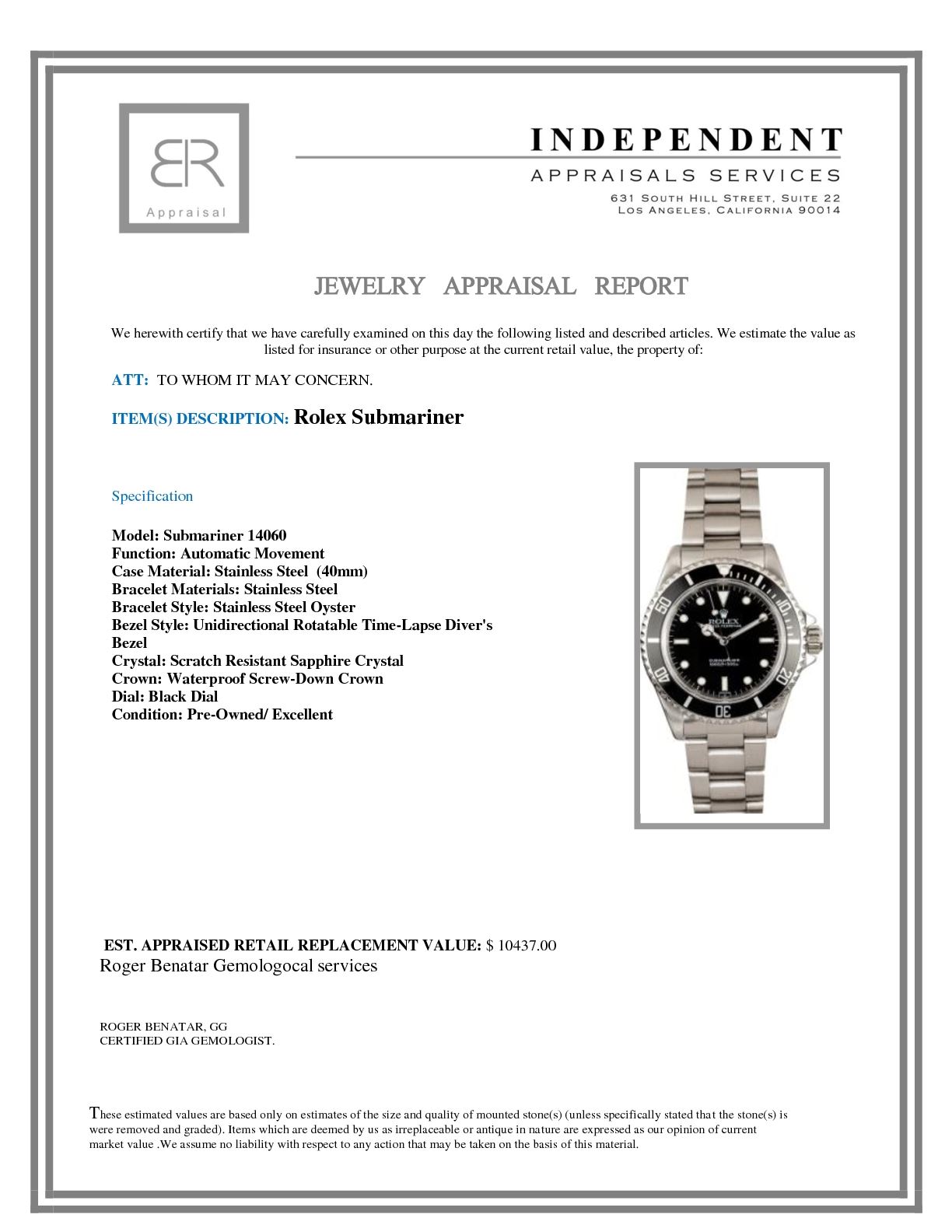 Not all jewelry, watches or loose stones are appraised and the appraisals are provided for bidders only in certain instances at the discretion of the Company. Appraisals, if any should be use to verify gemstone and or metal weights. The appraisals should not be used for valuation of any item. No guarantee, warranty or representation is intended by the Company in any appraisal. All dimensions and weights of such lots are approximate and are consistent with standards and practices in the industry. Condition reports are provided as a service to the prospective buyer. Bidders should take note that such descriptions are not warranties and that watches may need general service, change of battery or further repairs for which the buyer is solely responsible