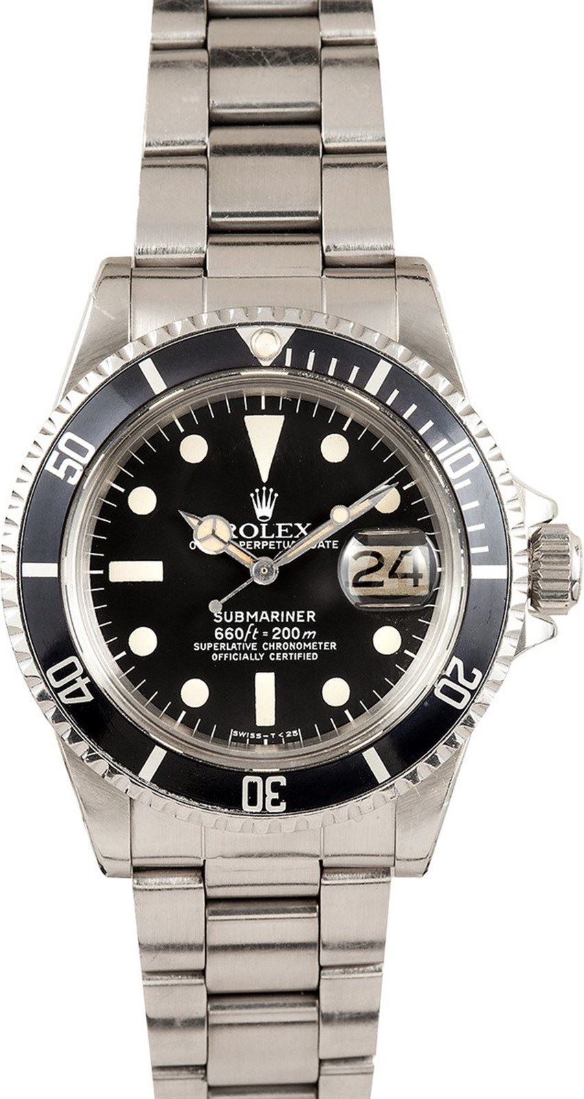 Model/Style-Submariner 1680 Features-Automatic movement w/ date, water resistant, unidirectional rotatable time-lapse diver's bezel, acrylic crystal Case-Stainless steel case (40mm). Case is unpolished and retains the original sharp beveled edges as well as the original fat font insert. Water resistant with screw down crown. Bracelet-Solid link 93150 oyster w/580 endlinks. Bracelet shows minimal stretch and is in excellent condition. #9289