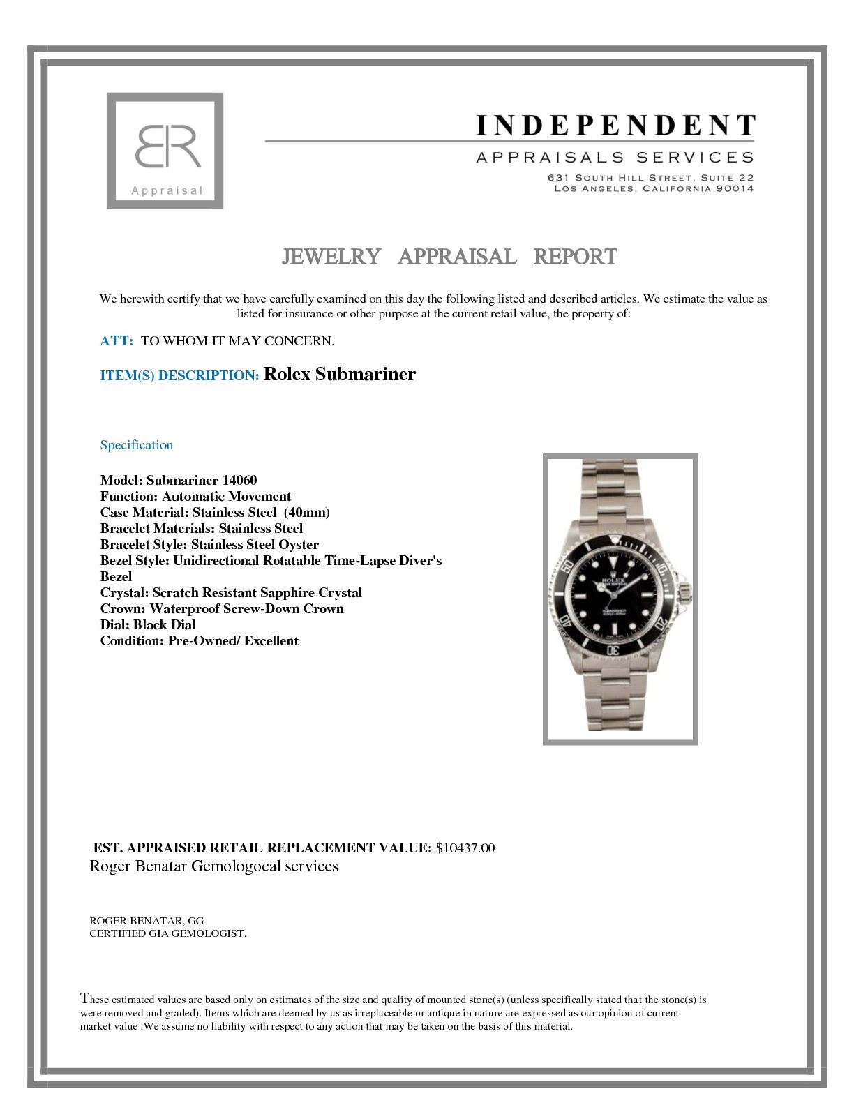 Not all jewelry, watches or loose stones are appraised and the appraisals are provided for bidders only in certain instances at the discretion of the Company. Appraisals, if any should be use to verify gemstone and or metal weights. The appraisals should not be used for valuation of any item. No guarantee, warranty or representation is intended by the Company in any appraisal. All dimensions and weights of such lots are approximate and are consistent with standards and practices in the industry. Condition reports are provided as a service to the prospective buyer. Bidders should take note that such descriptions are not warranties and that watches may need general service, change of battery or further repairs for which the buyer is solely responsible