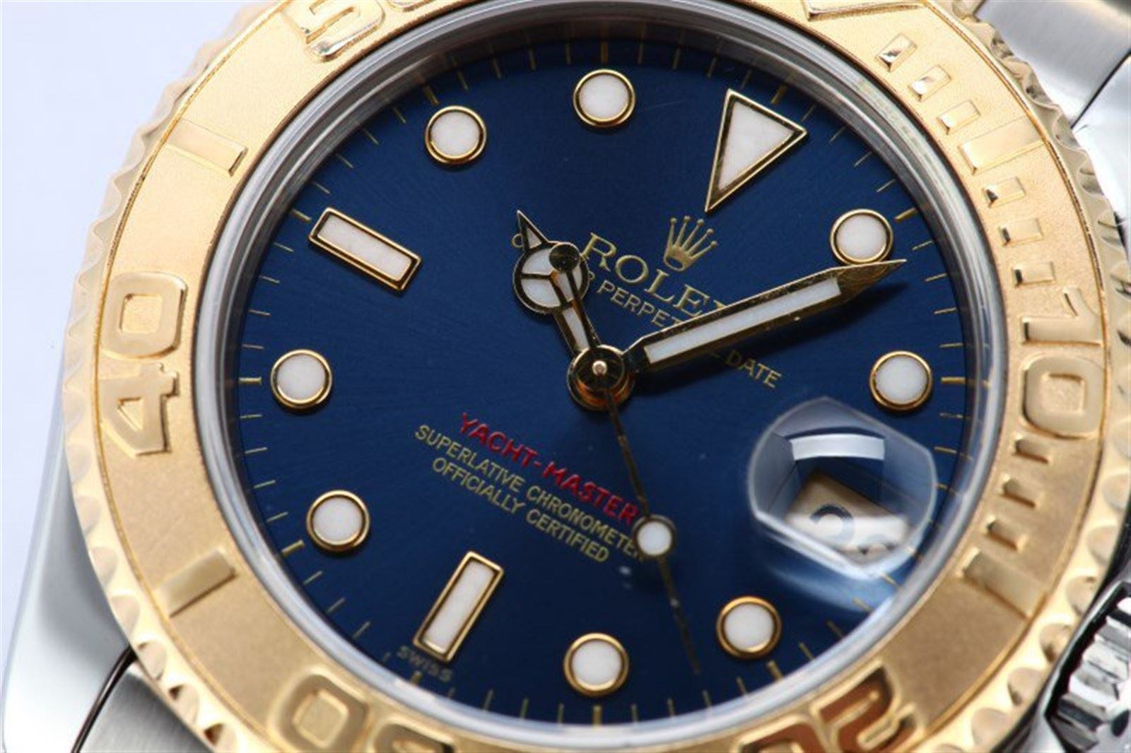 Model/Style-Yacht-Master 168623 Serial/Year-Random Features-Automatic 2235 movement w/ date, scratch-resistant sapphire crystal, waterproof screw-down crown Case-Stainless steel w/ 18k yellow gold rotatable time-lapse bezel (35mm) Bracelet-Stainless steel and 18k yellow gold Oyster #9297
