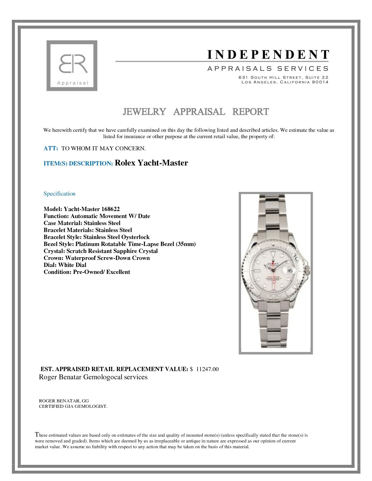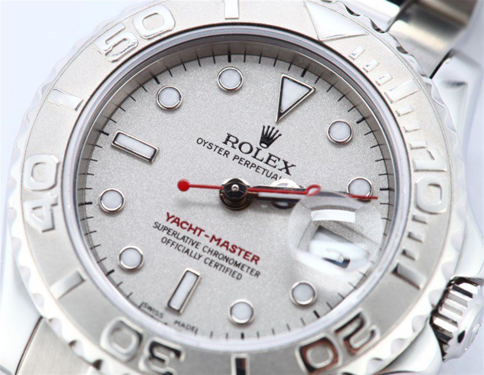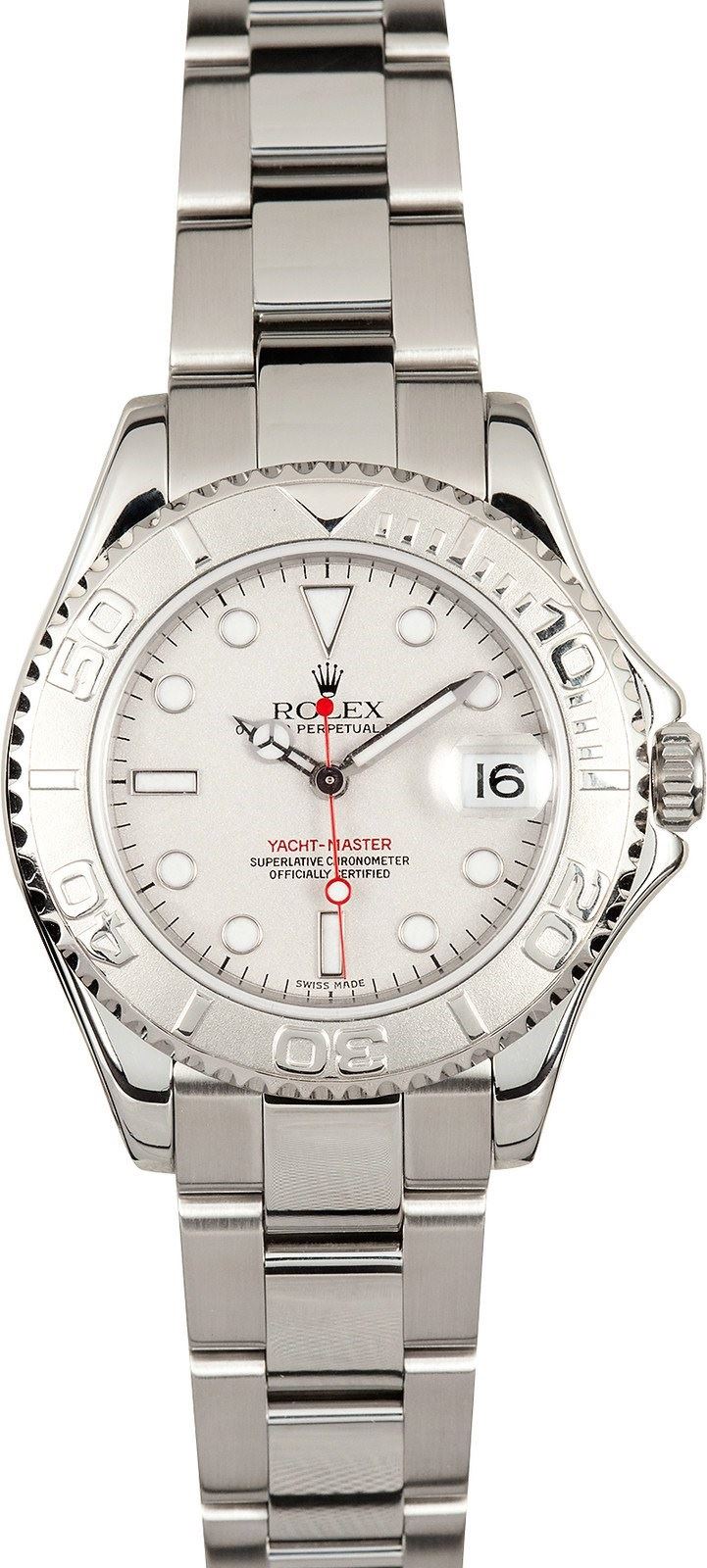 Model/Style-Yacht-Master 168622 Serial/Year-Random Features-Automatic movement w/ date, scratch-resistant sapphire crystal, waterproof screw-down crown Case-Stainless steel w/ platinum rotatable time-lapse bezel (35mm) Bracelet-Stainless steel Oysterlock #9298