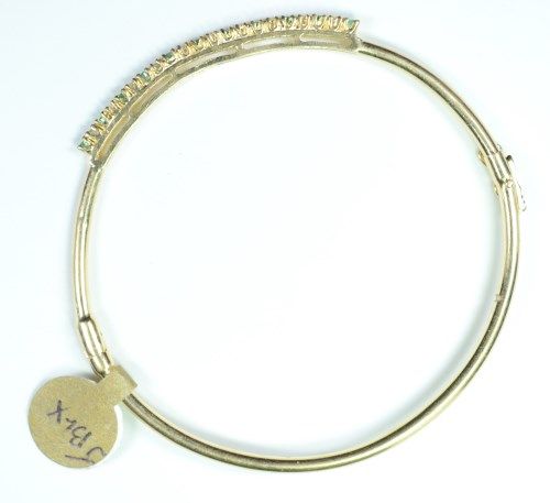 Safety Clasp, 11 round emeralds and 10 round diamonds, approx diamond weight .25ct tw. Est Value: $500-$600