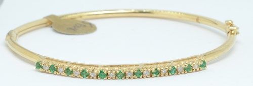 Pre0owned 14K Yellow Gold Emerald and Diamond Bracelet, Excellent Condition