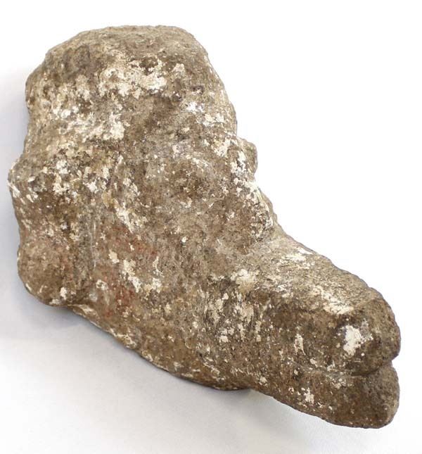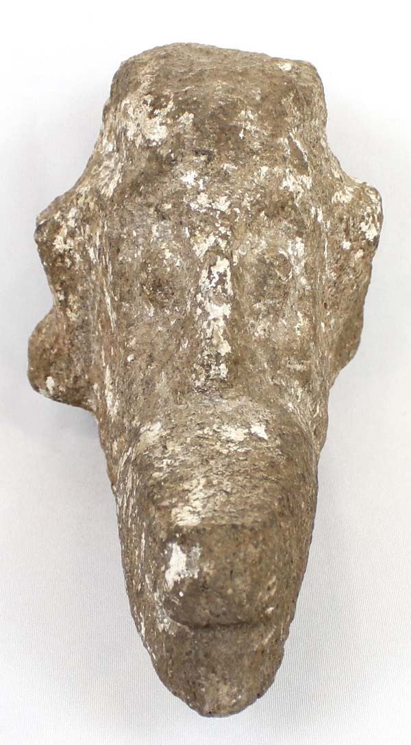 PreColumbian Carved Stone Human Head Effigy Replica, measures 6.5'' x 10'', weighs 8lbs. 2oz.