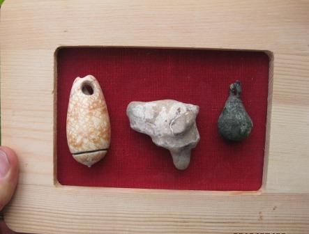 Bronze Bell and two clam seals. Puebla, Mexico measures 1 to 2 inches. Good condition with shipping $12.50. Circa 700 AD