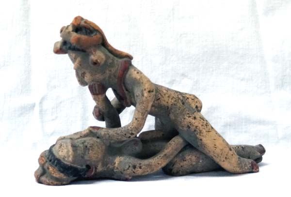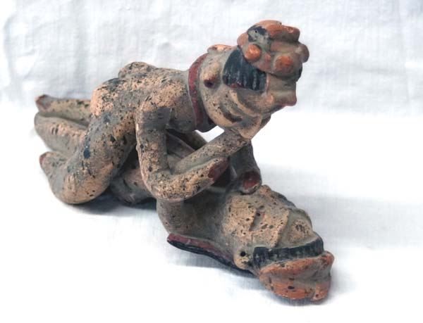 PreColumbian Erotica Figural Pottery Replica, measures 6.75''L x 4.5''H x 2.5''W