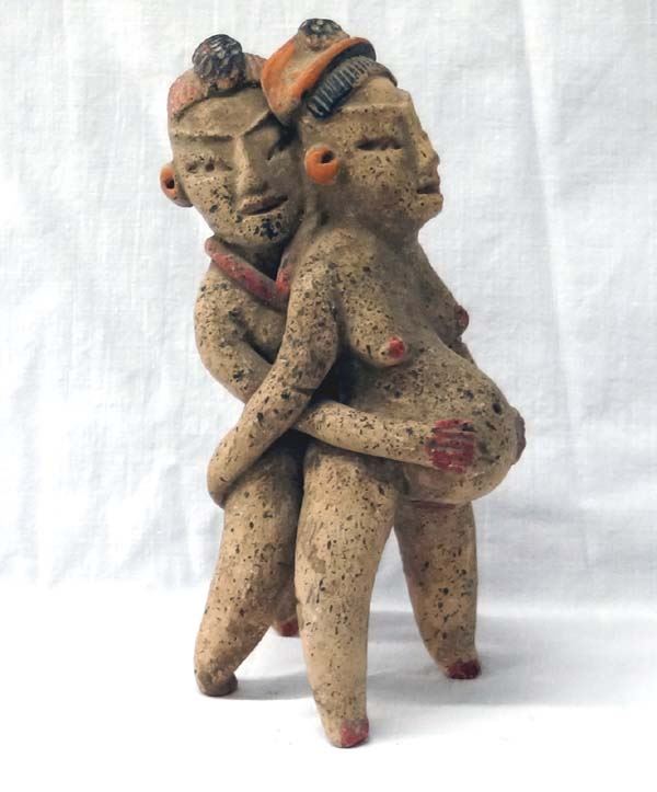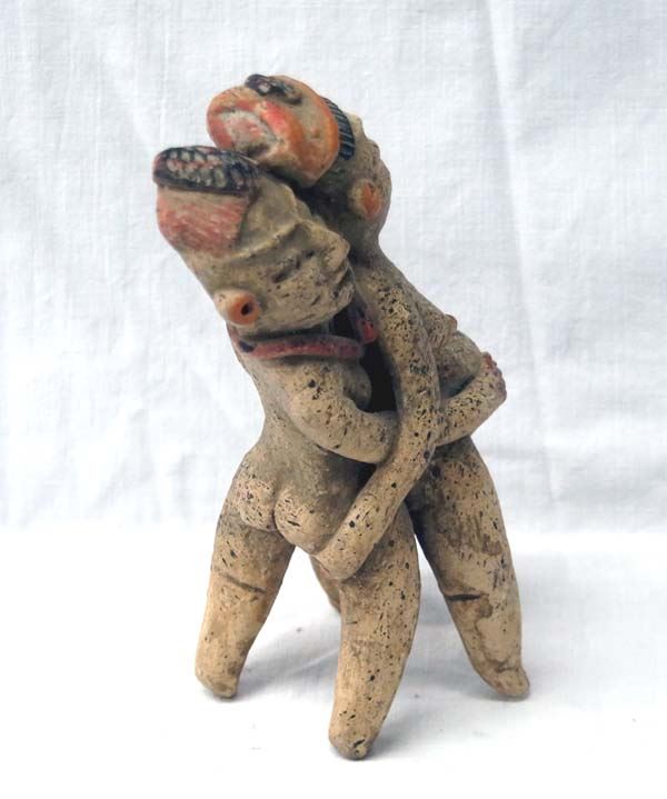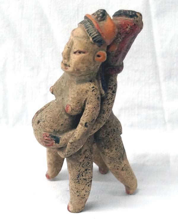 PreColumbian Erotica Figural Pottery Replica, measures 6.25''H x 2.5''W x 3.5''