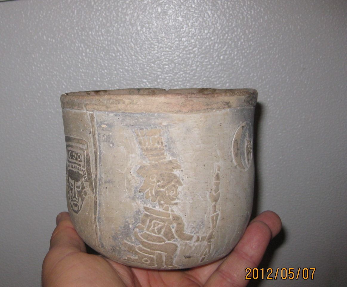 PreColumbian Mayan Vase from Guatamala. Figures are caraved on the outside of the vase. Item measures 5x5 inches. Circa 500 AD Shipping $15.00