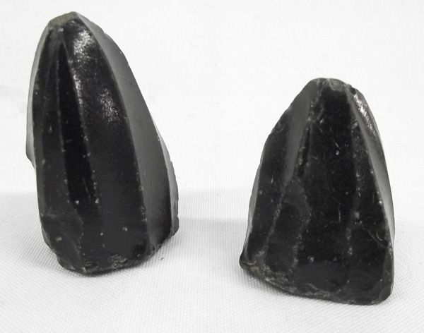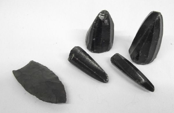 PreColumbian Obsidian Cones & Oregon Arrowhead, cones were used for making arrowheads and spear points, largest is 2''H x 1 1/8''W, gorgeous black arrowhead, origin Oregon, measures 2.5''L x 1''W