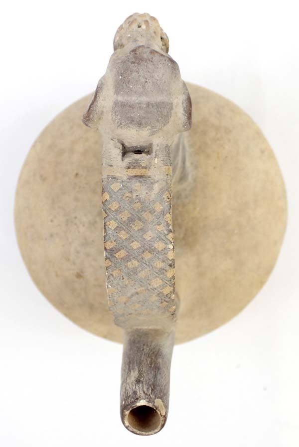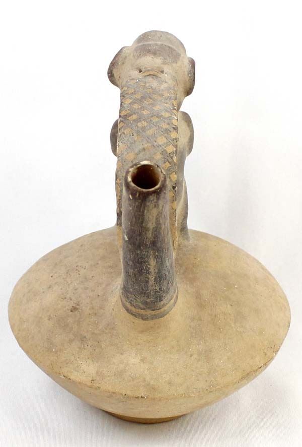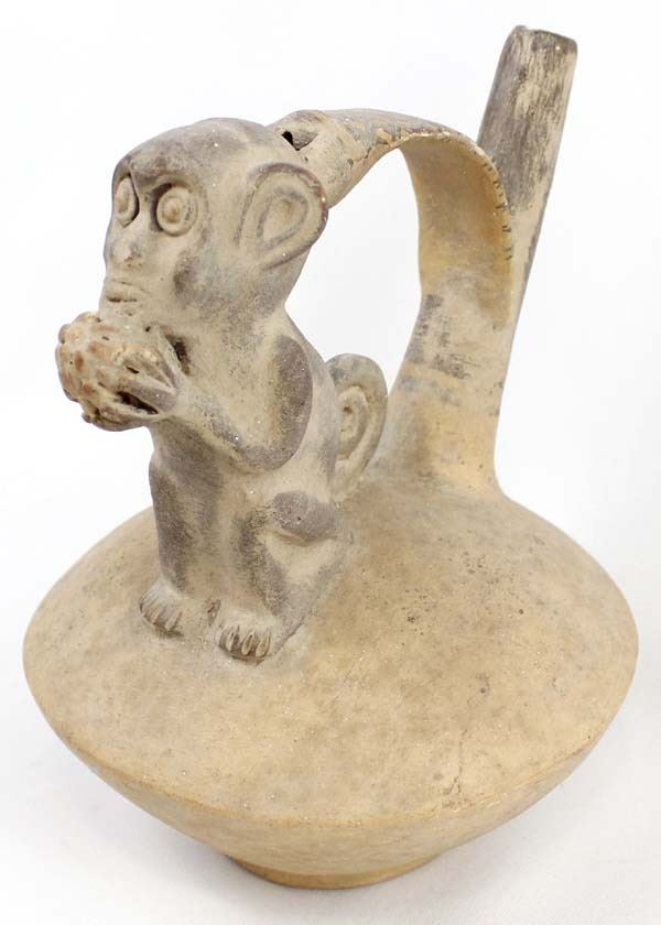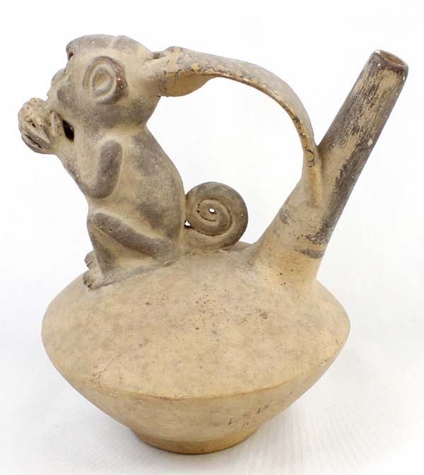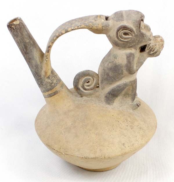 PreColumbian Stirrup Pottery Monkey Whistling Vessel Replica, measuares 7.5''L x 8''H x 6''D, has a great sound