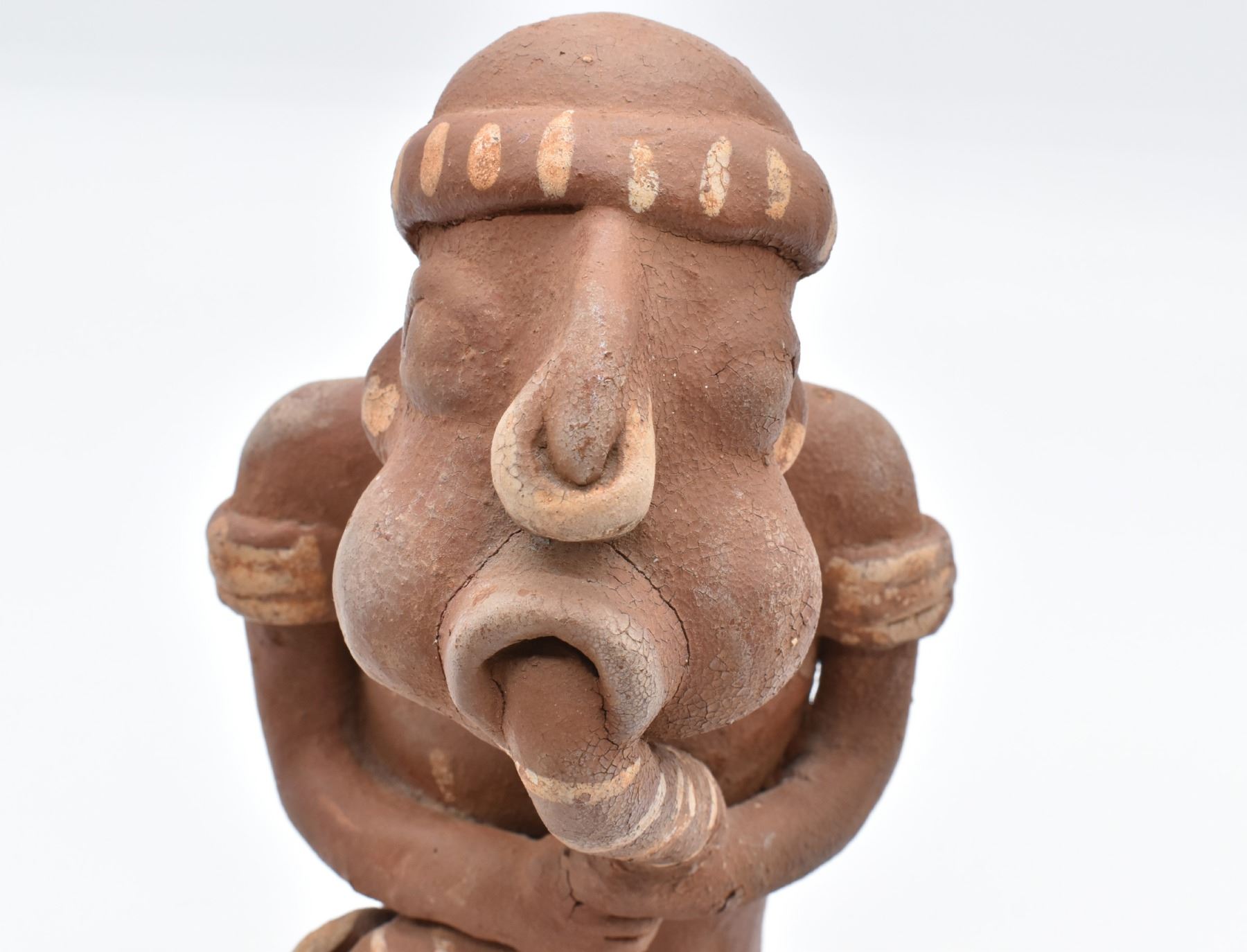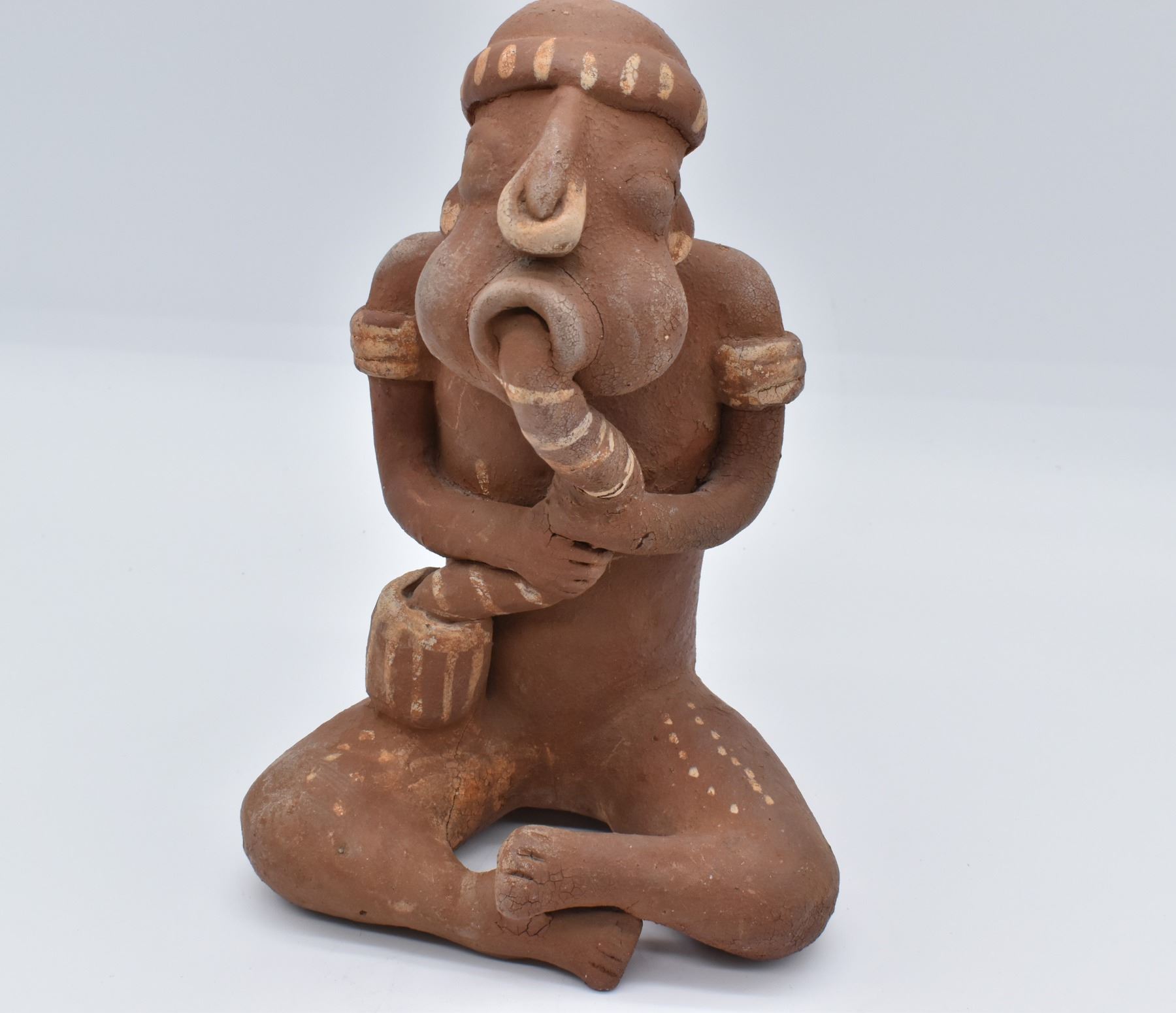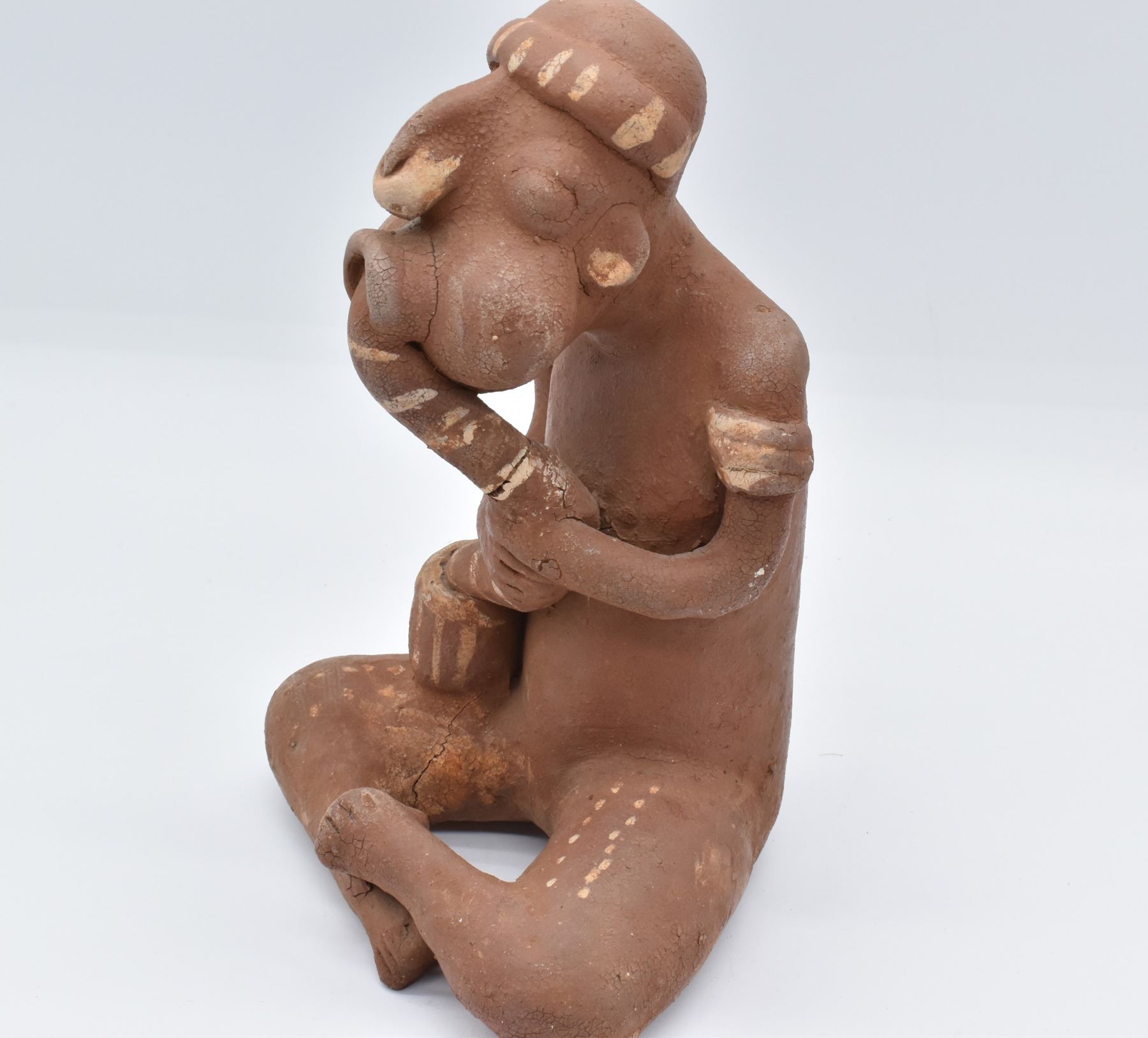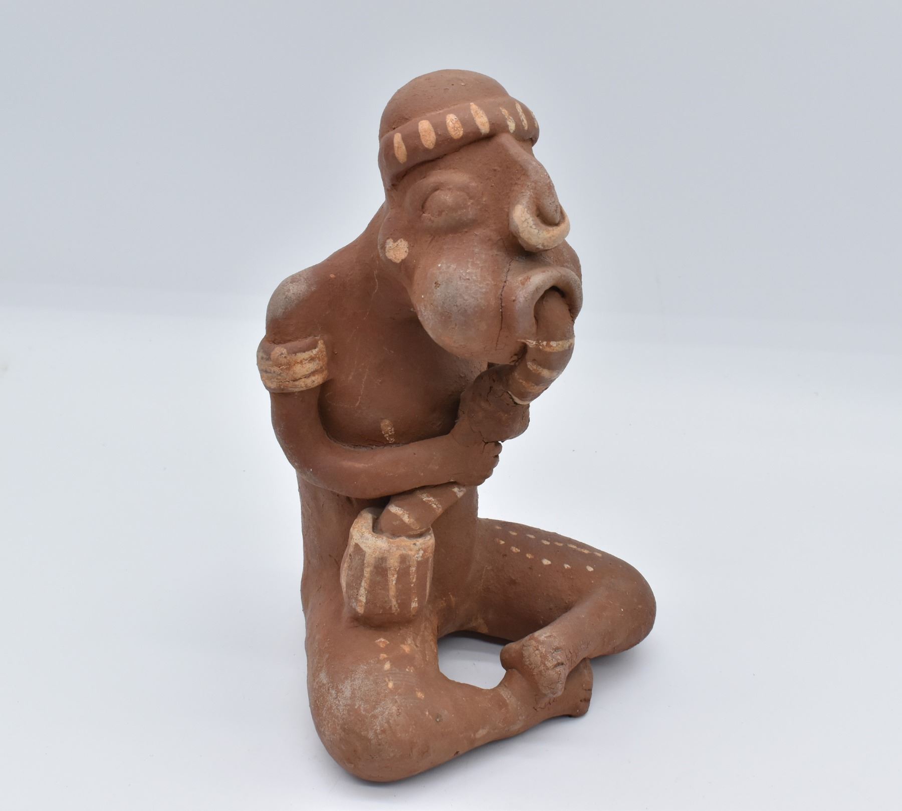 PreColumbian Pottery Musician Replica, measures 7'' x 7'' x 11''