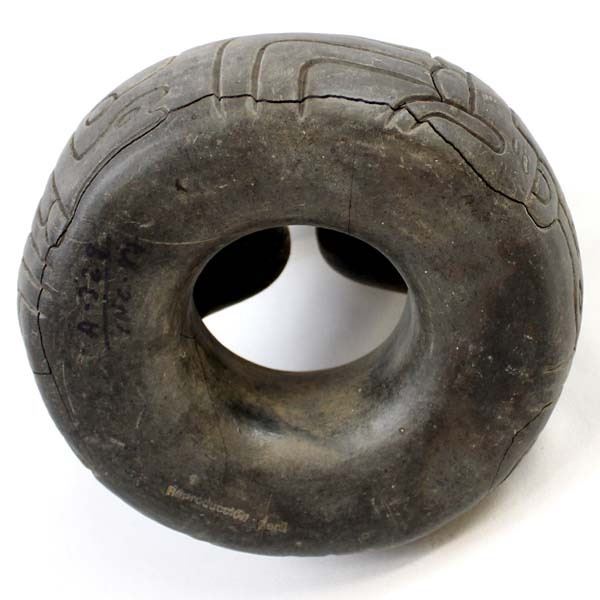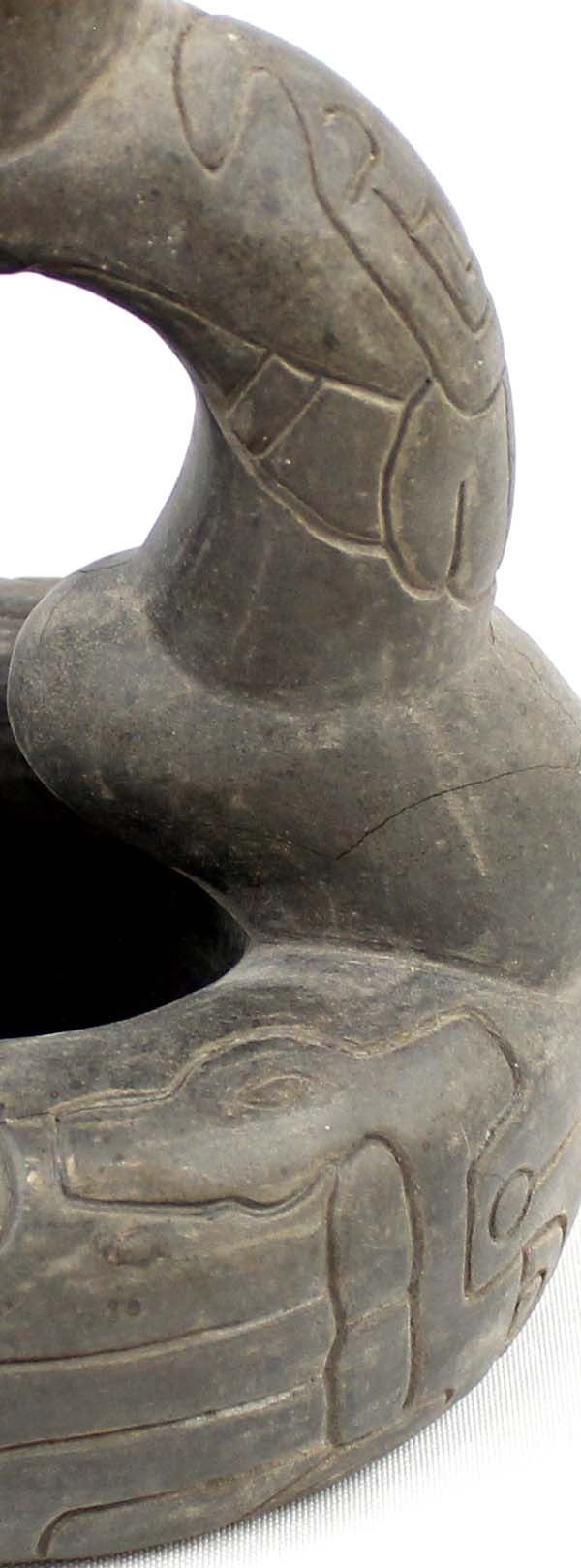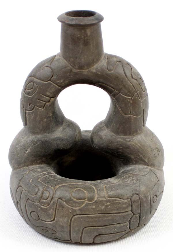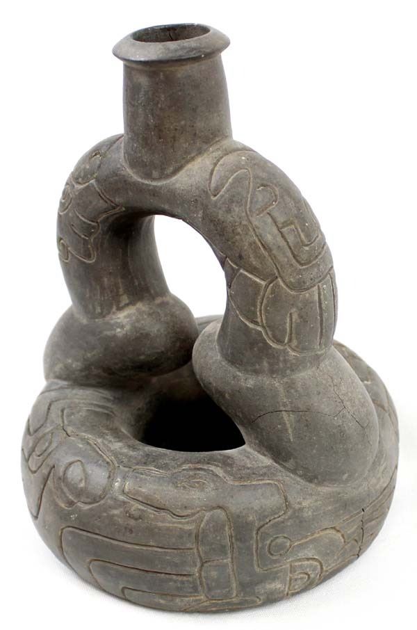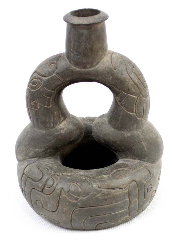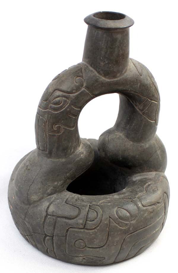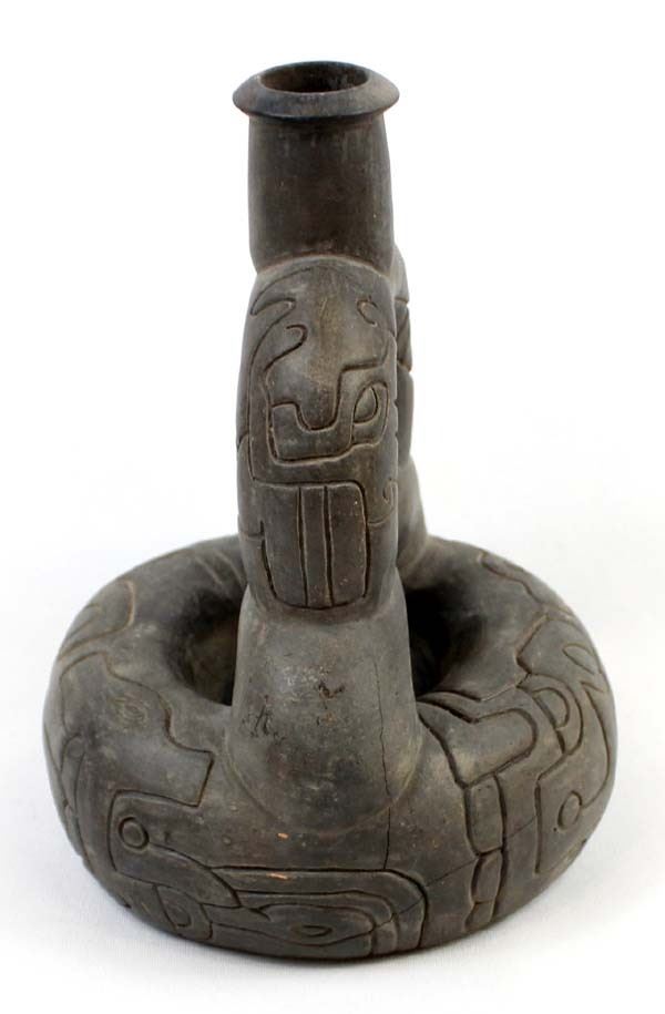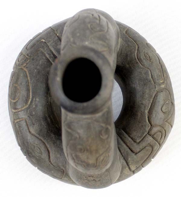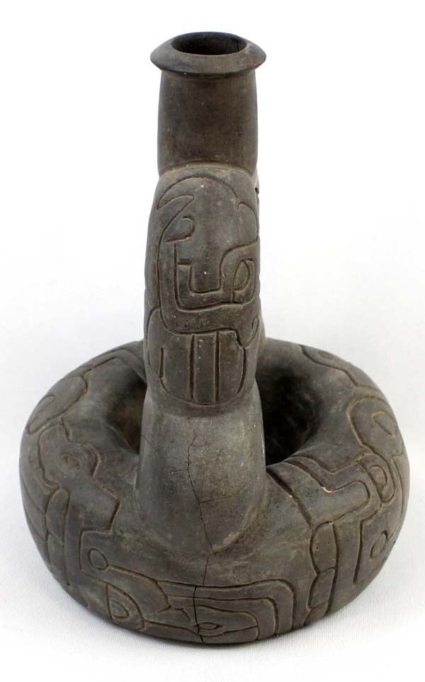 PreColumbian Pottery Stirrup Pot Replica, measures 8'' x 8'' x 6'', pressure cracks on the bottom, marked on the bottom