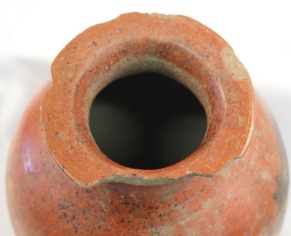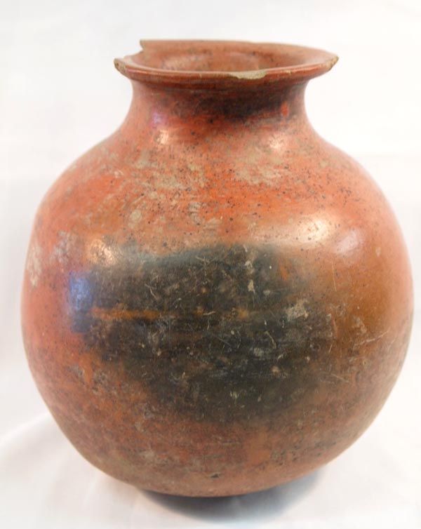 PreColumbian Red Ware Utilitarian Jar. Complete bowl is intact with the only damage is some chips out of the rim. Measures approx. 8 3/4''h x 8''W. Nice red color and has fire cloud. Acquired in accordance with all state and federal regulations.