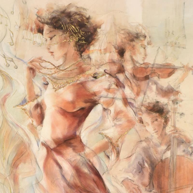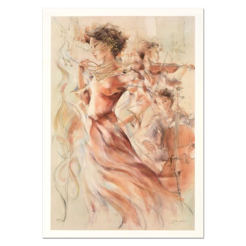 "Precious Moment" is a limited edition seriolithograph on paper with gold leaf by Gary Benfield, numbered and hand signed by the artist. Includes Letter of Authenticity. Measures approx. 19" x 27" (border), 17" x 25" (image).