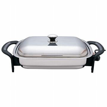 Precise Heat 16" Rectangular T304 Stainless Steel Elect **|**|** Features stainless steel cover, adjustable temperature control, and non-slip feet. UL certification. Cooking surface measures 16" x 11" x 2-1/4". Limited 5 year warranty