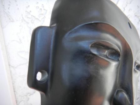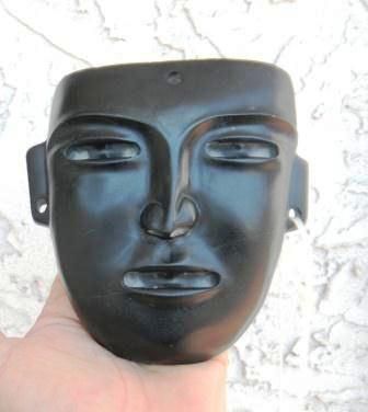 Precolumbian Style Obsidian Mask, meauring 6x6 inches. In good condition. Item dates to the 20th century. Shipping $18.00
