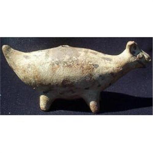 Chancay culture Peruvian Precolumbian ceramic vessel in shape of llama. Dates toAD. Provenance: Harmer Rooke Galleries, NYC. Size: length 6 inches, height 2.5 inches. Excellent condition. Estimated value: $2.800.