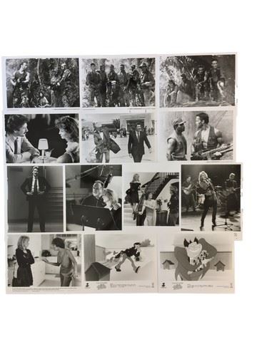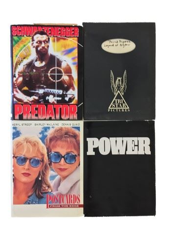 Collection of 4 press kits with black and white publicitys tills included, sized mainly 8x10's, from various movie studios. (1980's-90's). From Lorimar Motion Pictures "Power"(1986) starring Richard Gere as Pete St. John, Denzel Washington as Arnold Billings, and Gene Hackman as Wilfred Buckley, includes 8 stills. From 20th Century Fox "Predator" (1987) starring Arnold Schwarzenegger as Dutch, Carl Weathers as Al Dillion, and Elpidia Carrillo as Anne Gonsalves, includes 10 stills. From Tri Star Pictures "Pound Puppies Legend of Big Paw" (1988) starring Ruth Buzzi as Nose Marie, Nancy Cartwright as Bright Eyes, and Brennen Howard as Milor, includes 6 stills. From Columbia Pictures "Postcards From the Edge"(1990) starring Meryl Streep as Suzanne Vale, Shirley MacLaine as Doris Mann, and Dennis Quaid as Jack Faulkner, includes 5 stills.