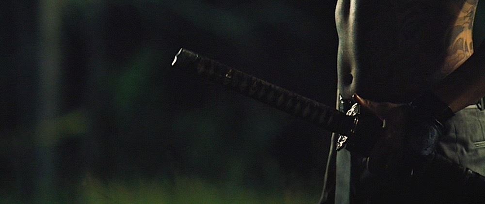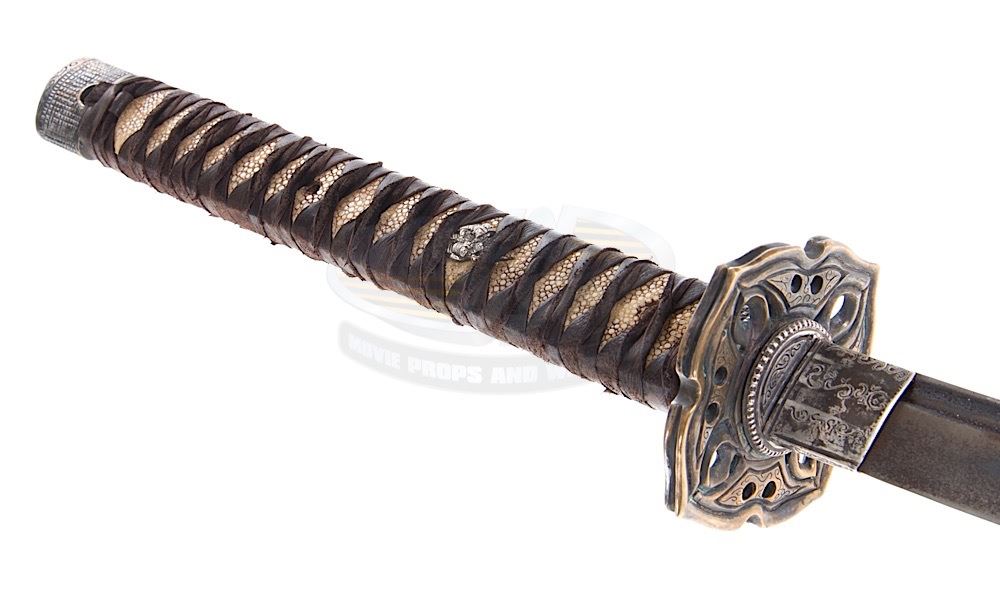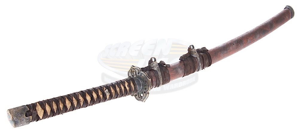 (Troublemaker Studios, 2010) This sword was custom-made by the production for use by Louis Ozawa Changchien as "Hanzo". This is the hero metal version with ornate detailing, leather wrapped handle and sheath. Measures 43" in length.