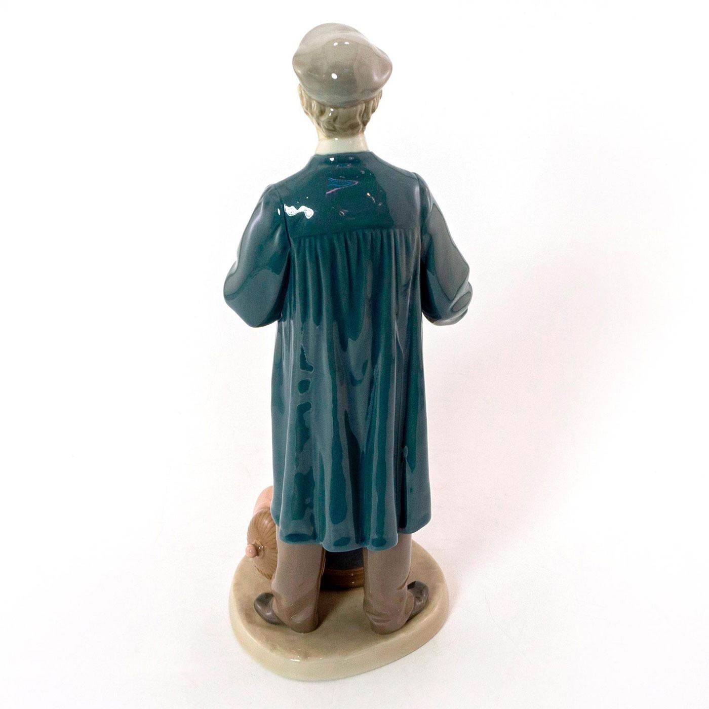 Glazed; Man in blue robe and pipe. Signed by artist.