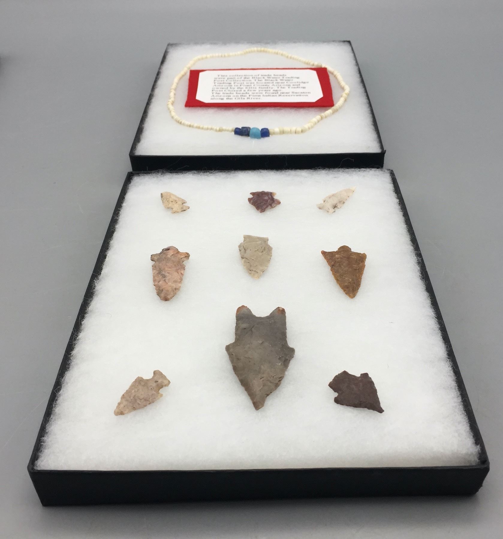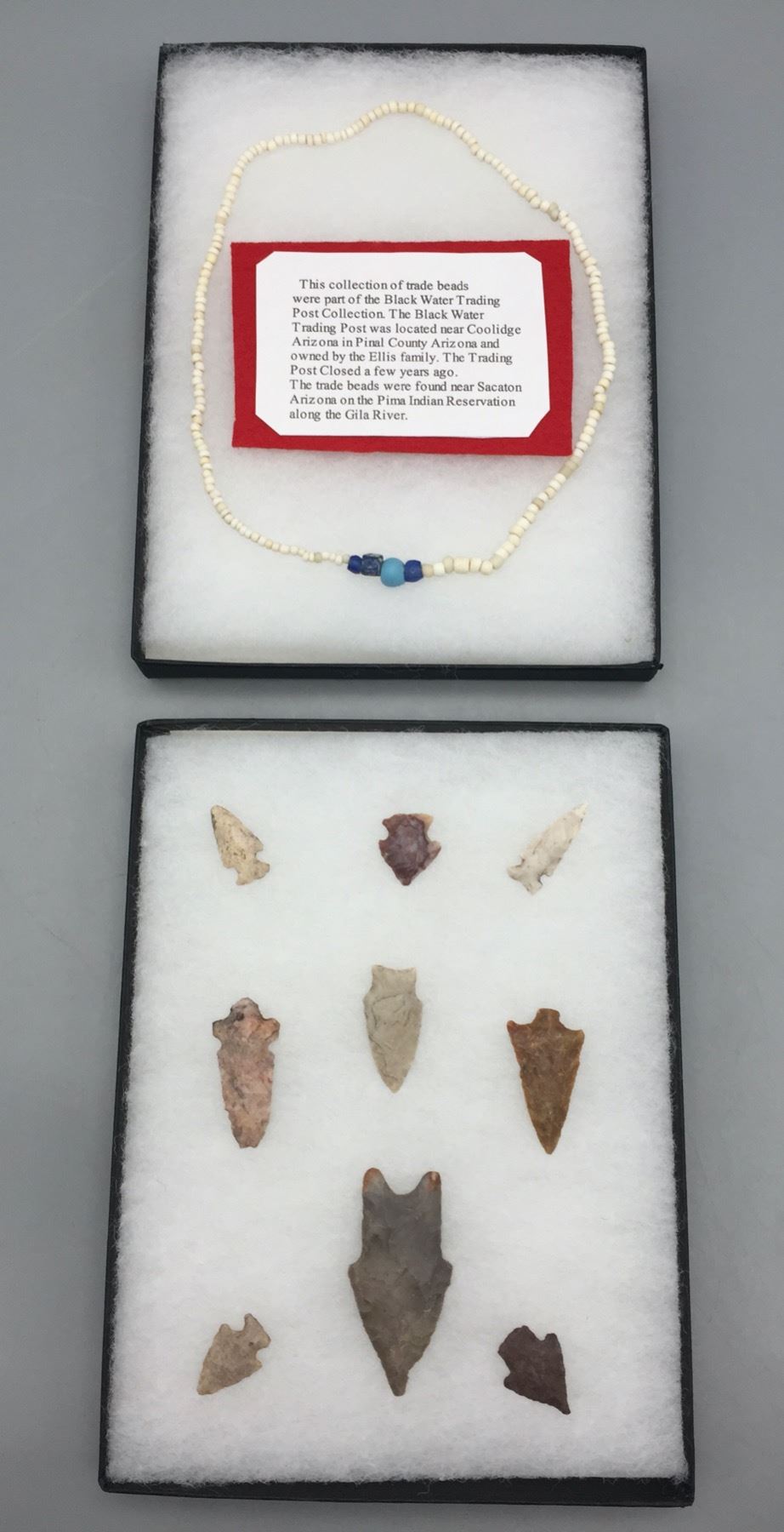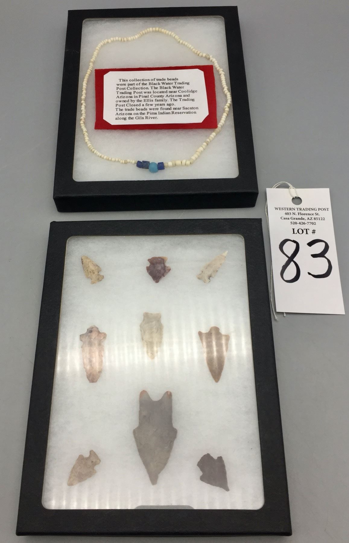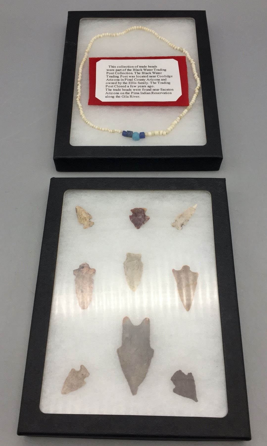 Description: For sale in this lot is a display of Prehistoric Arrowheads and a collection of trade beads that were part of the Black Water Trading Post Museum Collection located in Coolidge, Arizona. Maker: Unknown. Approx. Age: Prehistoric - historic. Size: 6-1/4â€w x 8-1/4†long. Condition: Good for their age, normal wear expected. Please look closely at the pictures - they are an important part of our description. Shipping: There will be a $8 handling / packaging fee for shipping this lot. The actual cost of postage will be added on top of that.