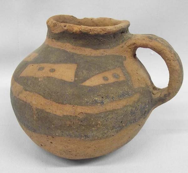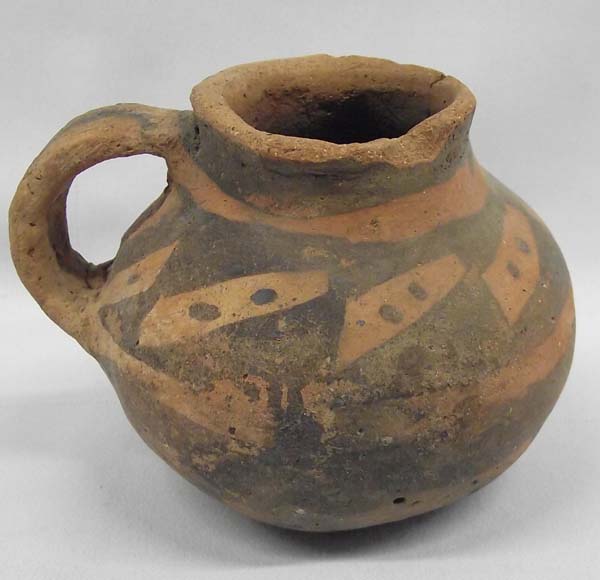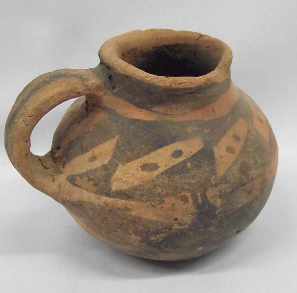 Prehistoric Geometric Jeddito Cup. Measures 3 1/2''H x 4''W. Very unusual flag pattern around the top of the cup, 2 small nips on the rim. No restoration, no overpaint, as is condition. 1275-1325AD. IN Compliance with all State and Federal regulations. Buyers Pay Actual Shipping and Handling Charges(see terms and conditions for more information).