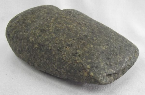 Prehistoric Mimbres Green Stone 3/4 Grooved Axe, measures approx. 3.25''W x 3.5''L x 1.5''H. New Mexico Estate, acquired in accordance with all Federal and State Regulations and Laws.