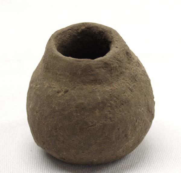 Prehistoric Mimbres Miniature Utilitarian Pot. As Found Condition. No cracks, chips etc.Measures approx. 2.75 x 2''. Could have been a Child's Pot. Heavy bodied miniature, in shape of seed pot. Complies with all State and Federal Government Rules and Regulations. Buyers Pay Actual Shipping and Handling Charges(see terms and conditions for more information)