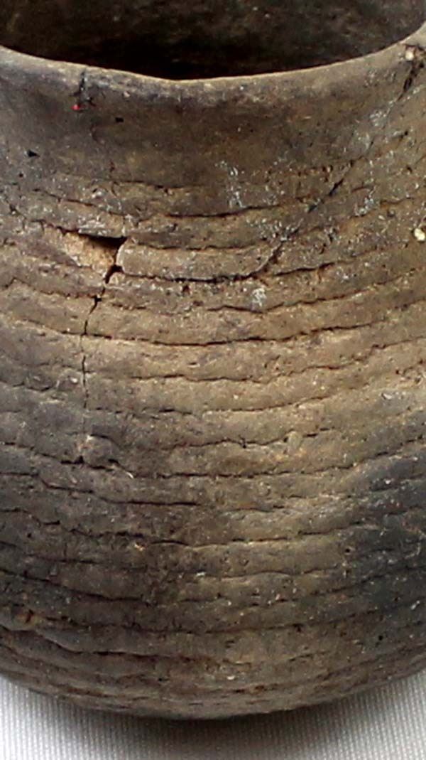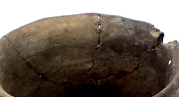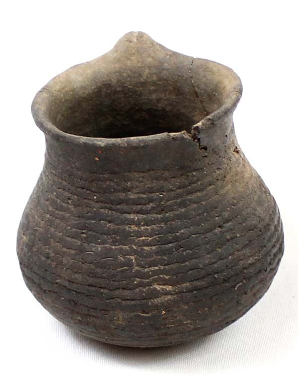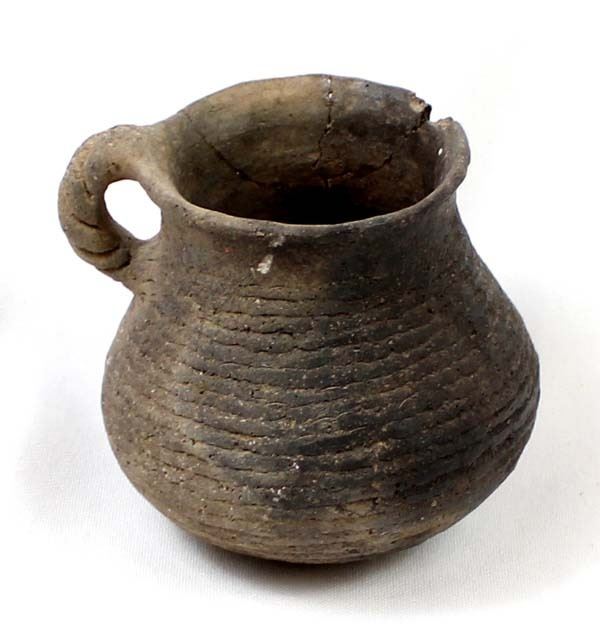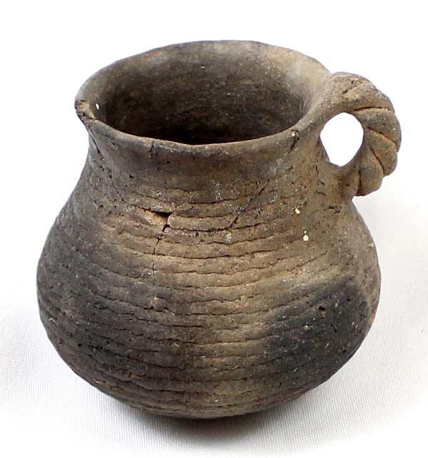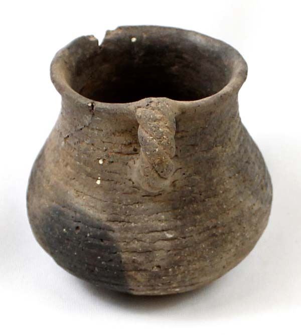 Prehistoric Native American Mimbres Pottery Pitcher, measures 3.5'' x 3.5'', rim has been glued, chips in rim