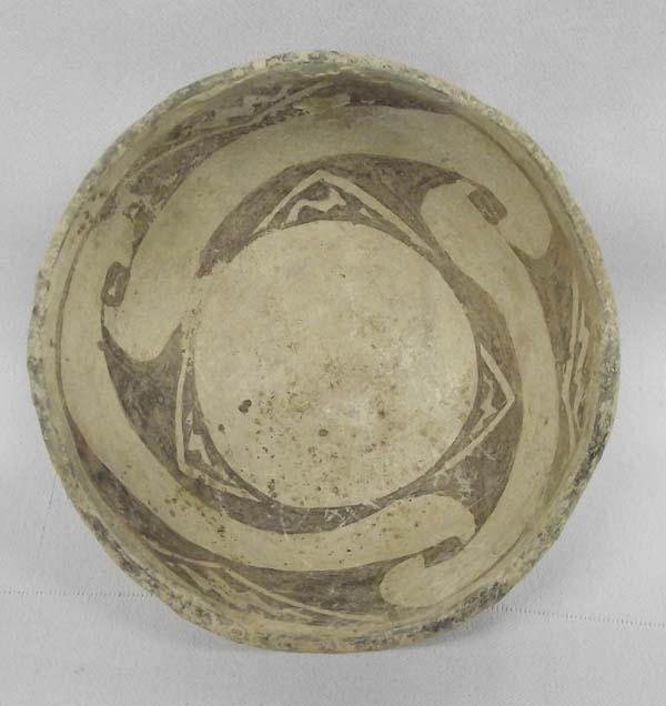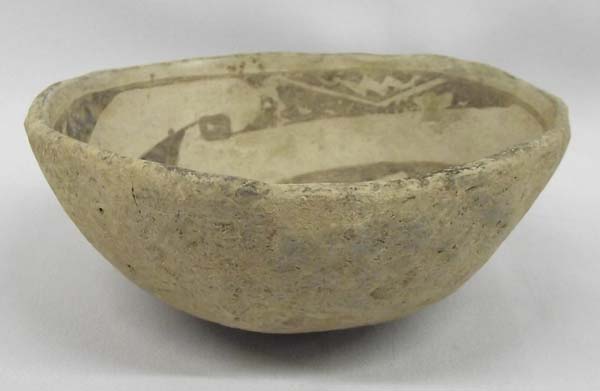 Prehistoric Mimbres Wind Pattern Negative Bowl. Measures approx. 2 1/2''H x 5''W. This bowl has a wind pattern negative design. Bowl has no restoration, no overpaint, no glue, as found condition. IN Compliance with all State and Federal regulations. Buyers Pay Actual Shipping and Handling Charges(see terms and conditions for more information).