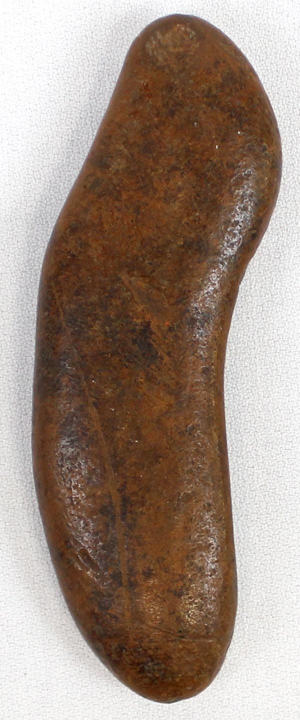 Prehistoric Native American Bird Stone, measures 6''L x 1.5''W, black and brown mottled in color