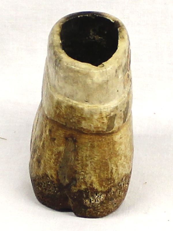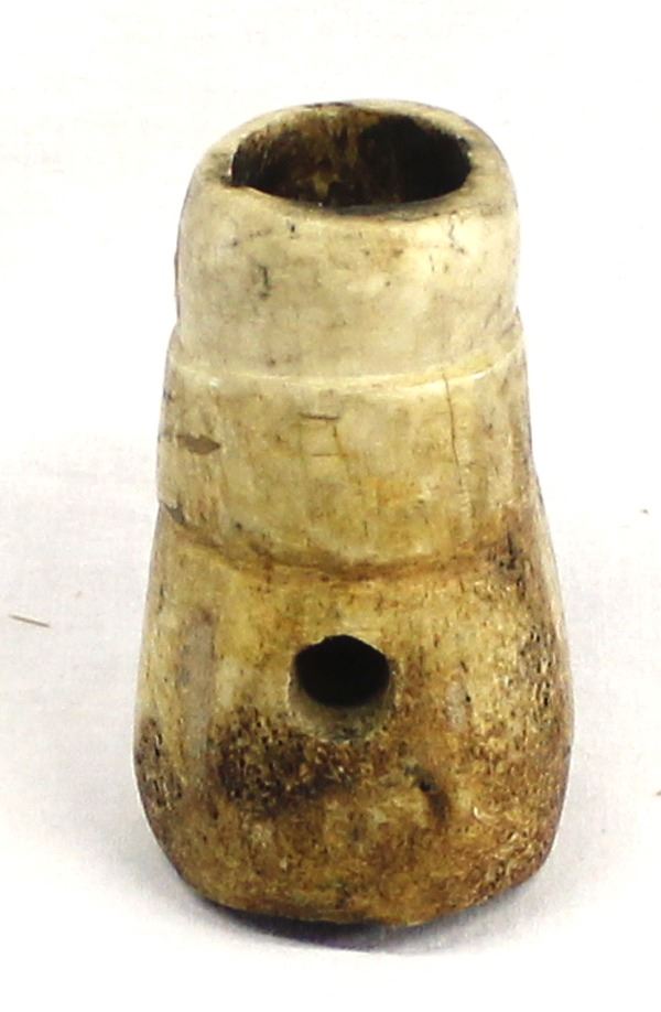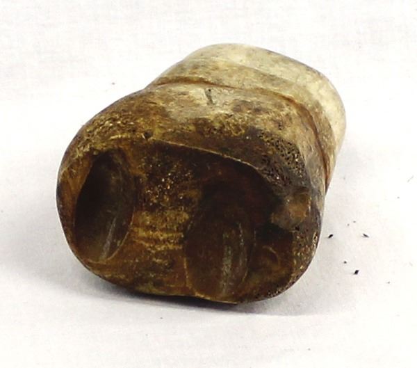 Prehistoric Native American Carved Bone Pipe, measures 3'' x 3''