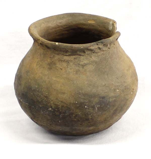 Prehistoric Native American Utilitarian Pottery Jar, measures 5'' x 6.5'', chip in rim