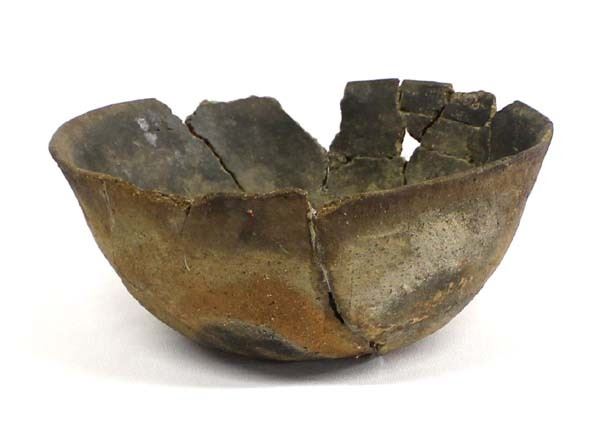 Prehistoric Native American Utilitarian Pottery Bowl, measures 8.5''D x 4''H, has been glued