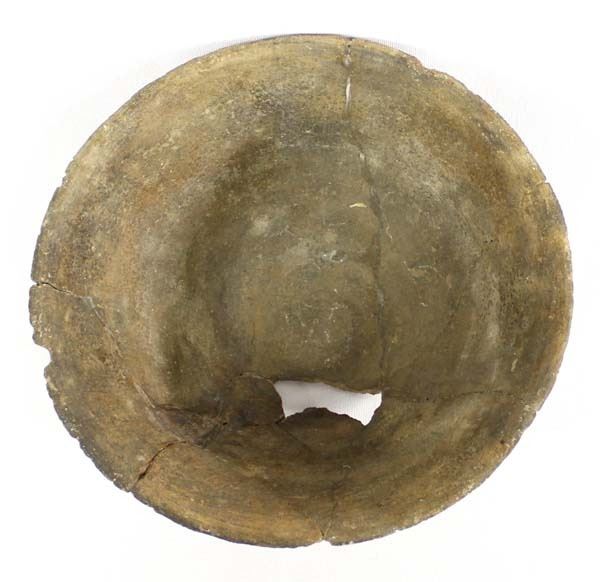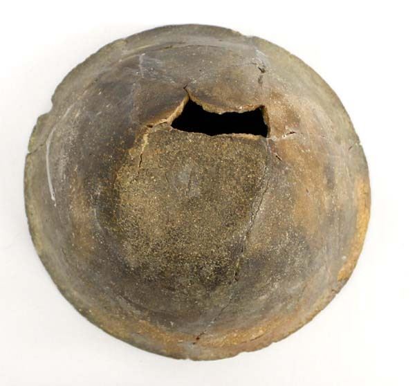 Prehistoric Native American Utilitarian Pottery Bowl, has been glued and is missing piece in bottom of bowl, measures 3.5'' x 7'', Acquisition is in compliance with all state and federal regulations.