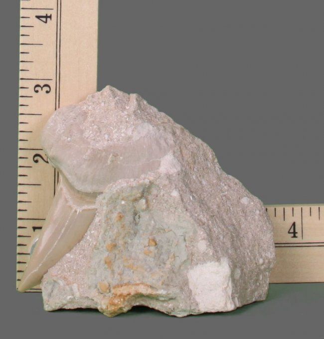 Prehistoric Shark Tooth Fossil imbedded in stone (Size: See Last Photo for Measurements)
