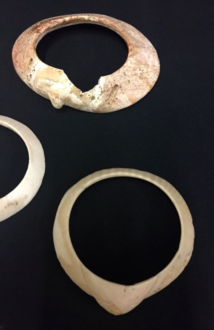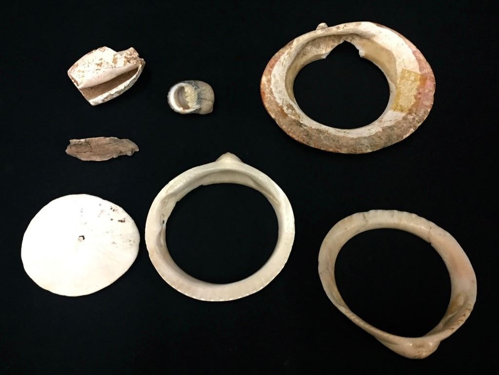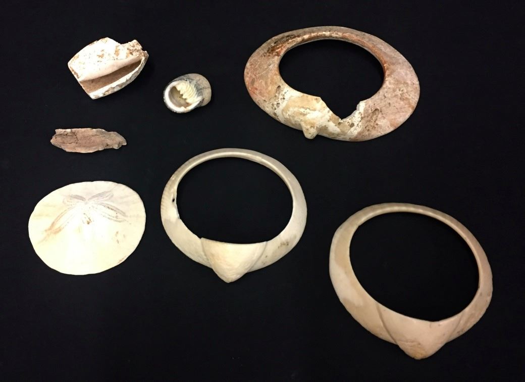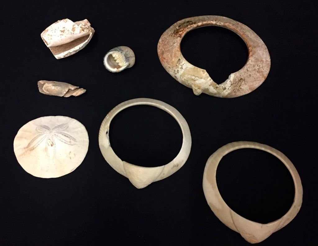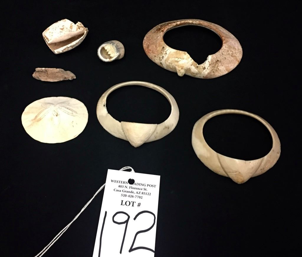 Maker: Prehistoric Hohokam items from a Coolidge, AZ collection. Approx. Age: Prehistoric on most of it (the sand dollar and largest bracelet are unknown, and appear to be more of “historic period” than prehistoric). Size: Items measure from 2” to 5” across. Condition: As found. Additional Info: It’s rare to find the shell bracelets in complete condition. Please look closely at the pictures - they are an important part of our description. Shipping: There will be a $5 handling / packaging fee for shipping this lot. The actual cost of postage will be added on top of that.