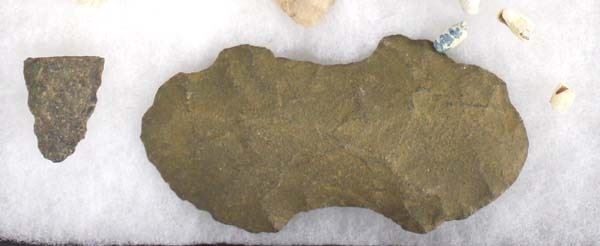 Prehistoric Native American Stone Tools and Shell Beads, largest piece measures 2.5'' x 4.5''