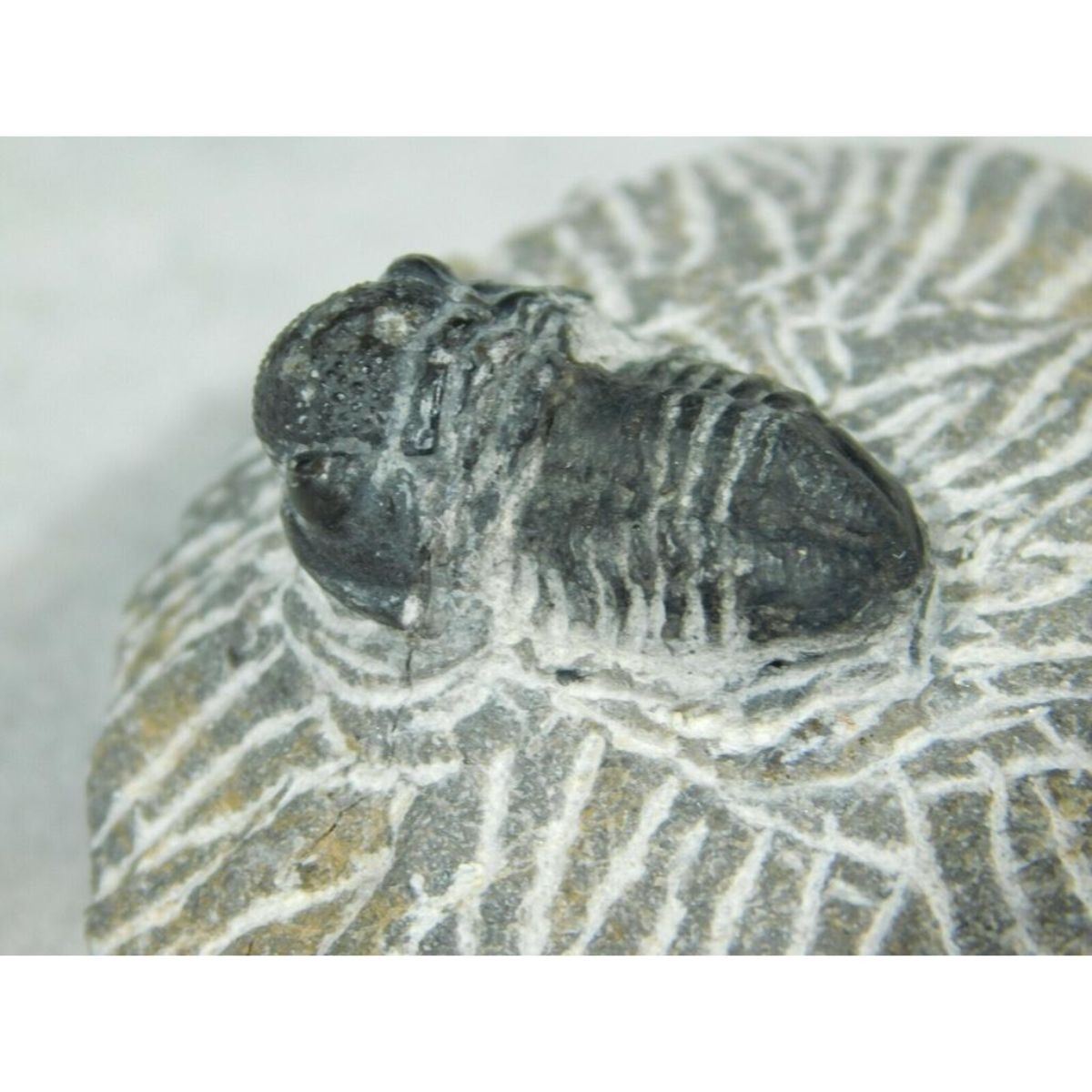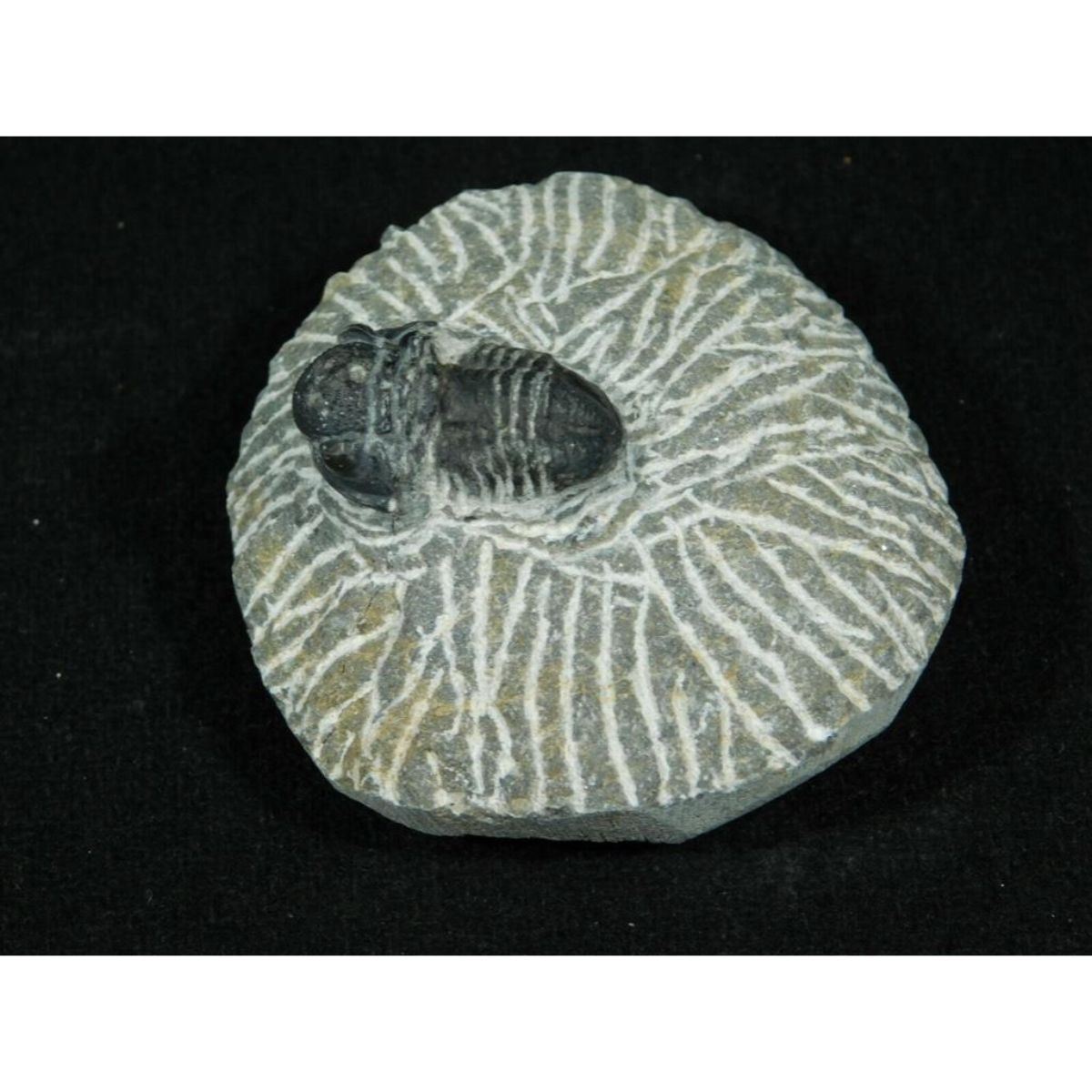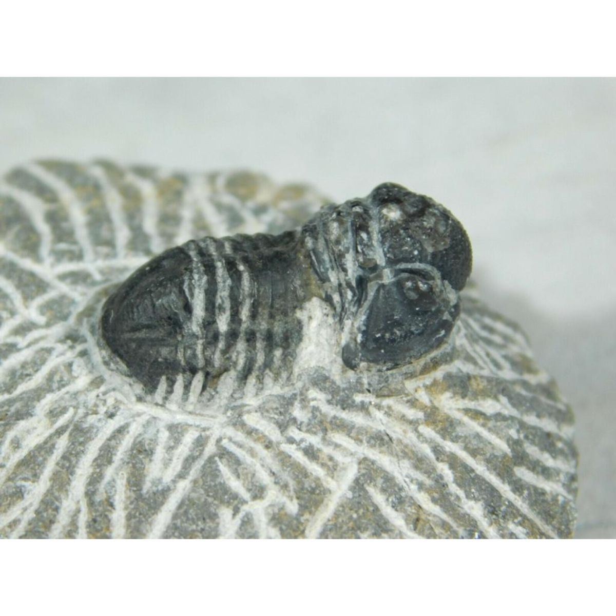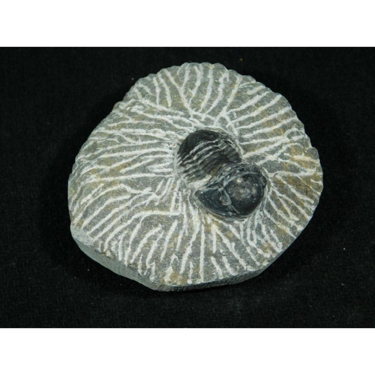 Natural Gerastos Granulosus Trilobite Fossil specimen from the Middle Devonian of Morocco. Excellent display fossil, specimen with sharp details. Measures 7/8" sitting within approx 2 1/4" D matrix. 80.2 gr weight. The Proetidae family of Trilobites was the last group to go extinct at the end of the Devonian Era. This "rock" was a living animal 400 million years ago. Â