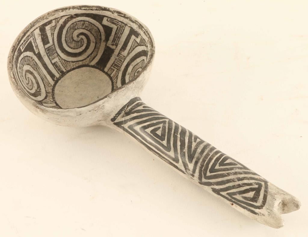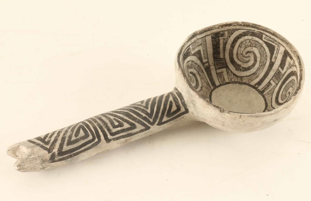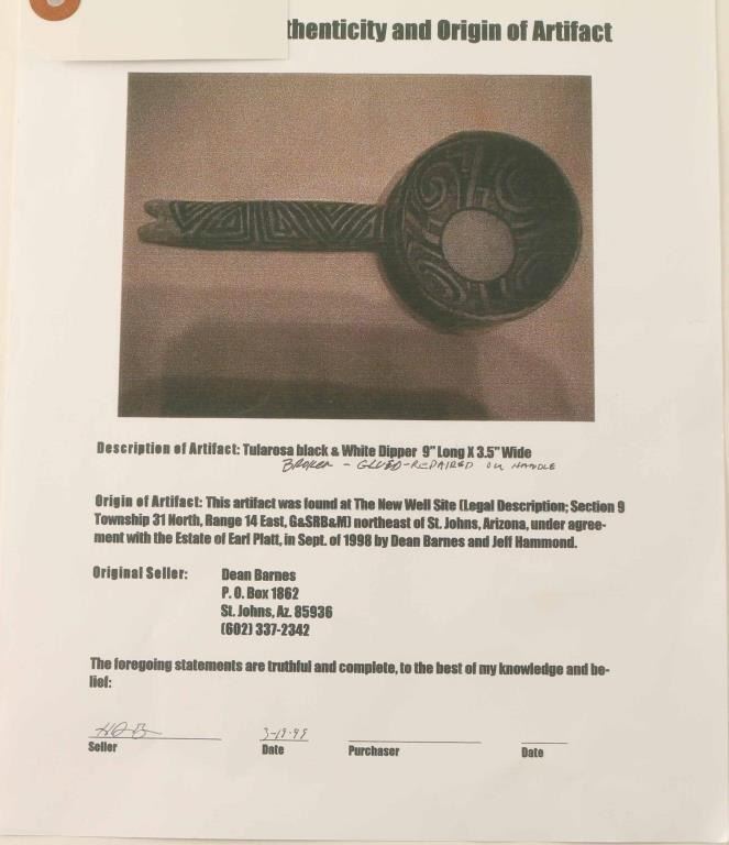 Black on white, 9"x3.5", repaired from St. Johns Arizona, includes Statement of authenticity and origin of artifact.
