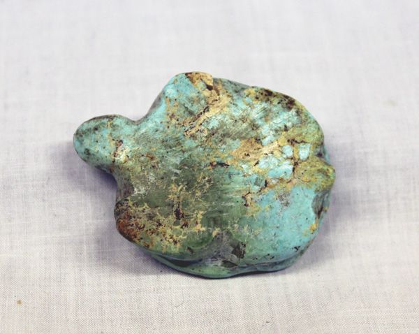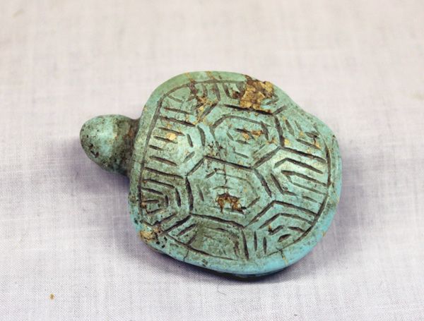 Prehistoric Turquoise Turtle Fetish, measures 2.25 in. 1.5 in. x .5 in. high, highly detailed geometric etching on the shell, found on the Carr Ranch in New Mexico (private land) and acquired in accordance with all state and federal regulations, phenomenal artifact and a fine addition to your collection