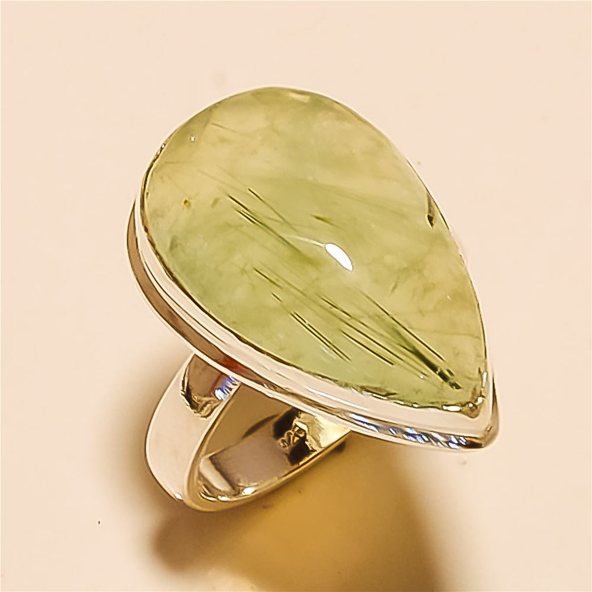 Prehnite RING Solid Sterling Silver Length:1inch Weight:7gram Size:9 #R-131