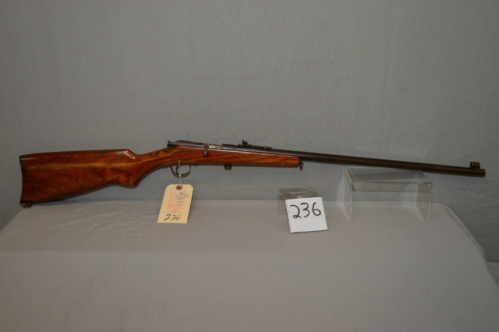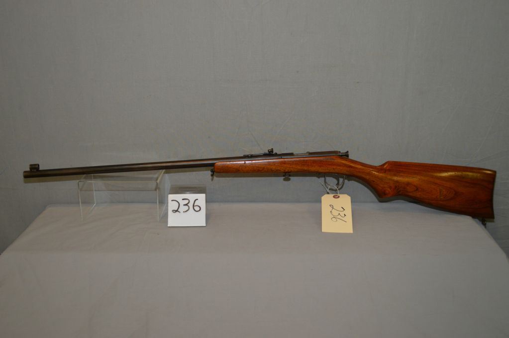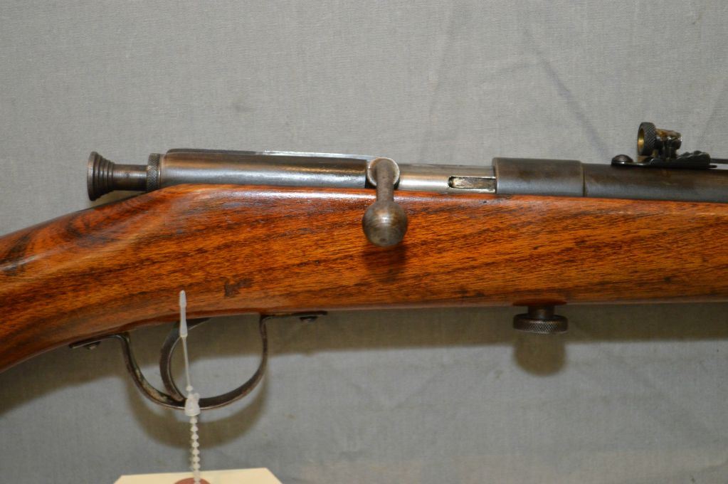 Premier Model Single Shot .22 LR cal Single Shot Bolt Action Rifle w/ 22" bbl [ fading blue finish, barrel sights w/hooded front sight, made up peep sight, revarnished wood, w/sling swivels, metal butt plate,(19) ] Ser # Nil