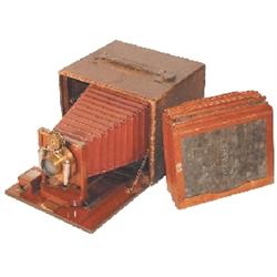 Premier glass plate camera in leather carrying case, complete w/4 holders for glass plates, mfgd. by