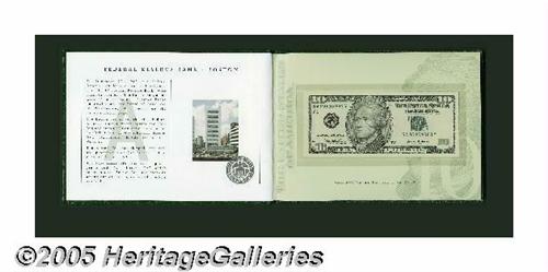 <B>Premium Federal Reserve $10 Set Fr. 2033-A-L $10 1999. Gem Crisp Uncirculated.</B></I><BR>This limited BEP set is professionally bound in a book of 24 pages with a slipcase and a total production run of only 2,000 sets. Besides the notes, there is information on all 12 Federal Reserve Banks. Also, all 12 notes have serial number 99999983Y. This set quickly sold out when it was made available.