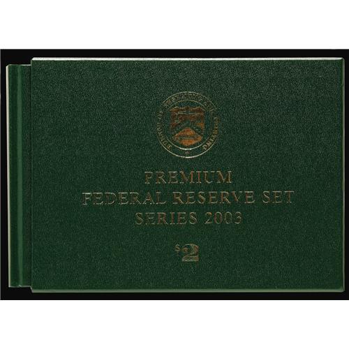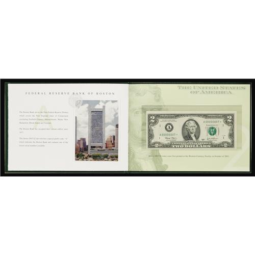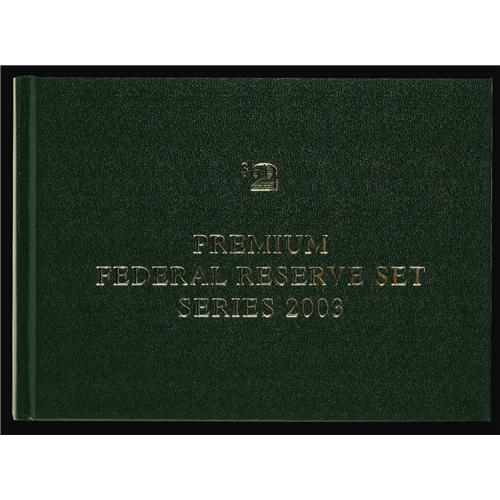 <B>Premium Federal Reserve $2 Set Series 2003 Fr. 1937-A*-L* Federal Reserve Notes. Gem Crisp Uncirculated.</B></I><BR>This is a fantastic set that carries the super low serial number of 00000007*. Only 2,000 sets were produced with this being the lowest serial number we have seen offered as a set. Expect to see a formidable bid win this wonderful item.